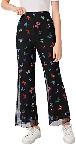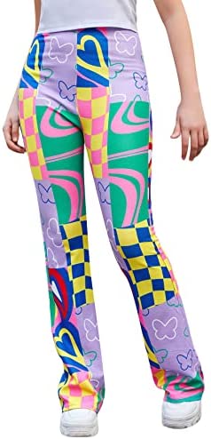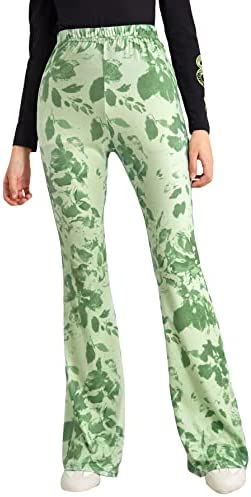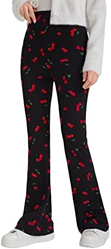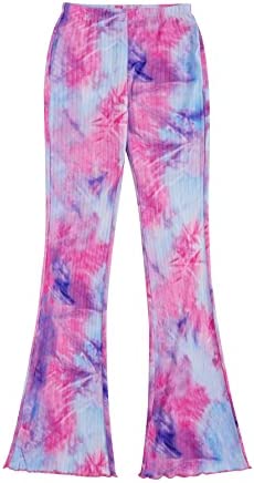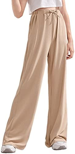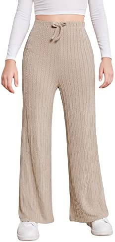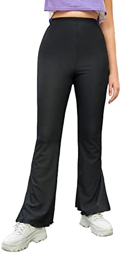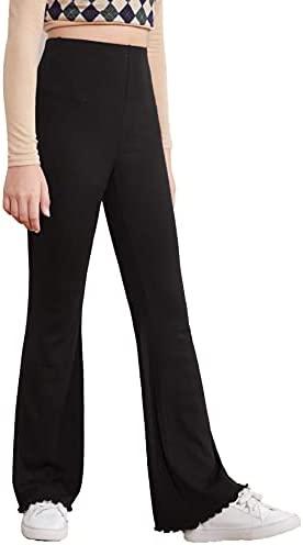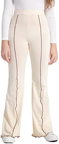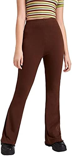 WDIRARA Girl's Elastic Waist Flare Leg Ribbed Knit Casual Stretch Long Pants