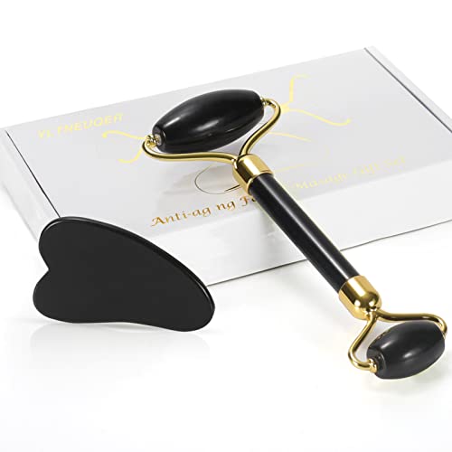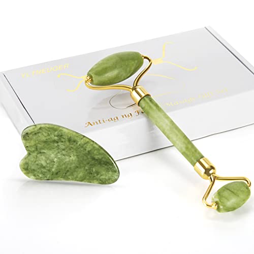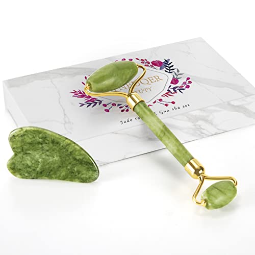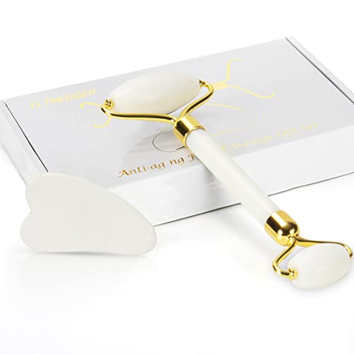 YLTNEUQER Jade Roller Gua Sha Set - Facial Skin Care Set, Facial Beauty Tools, Natural Beauty Skin Care Tools, Face Roller Massager for Face, Neck, and Eye Treatment (White)