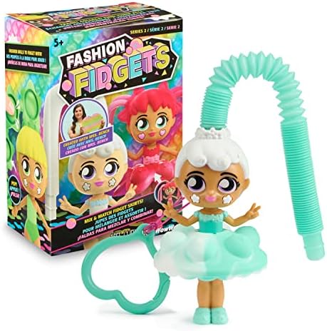TRADE YOUR FIDGETS. Grow your Fashion Fidgets collection by trading with friends. Collect all Fashion Fidgets with poppable ponytails by trading your fidget dolls with spinning skirts. Fun for every fashionista ages 5 plus.