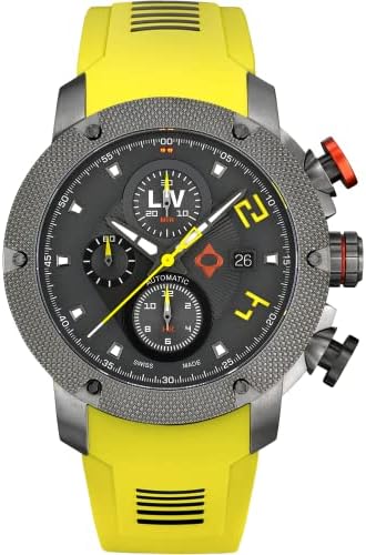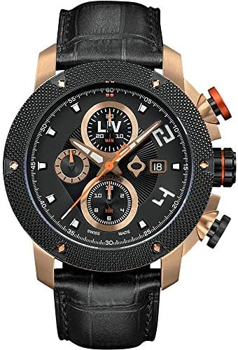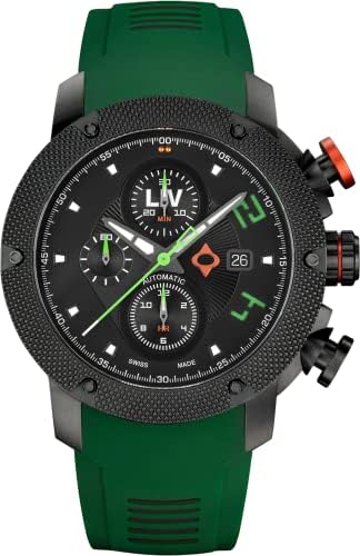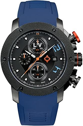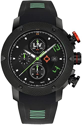 LIV GX-AC Swiss Automatic ETA 7750 26 Jewel Movement Chronograph 46mm 316L Case, 3D Multi-Layer Dial + Quickset Date - Rugged Classic Watch for Men - Skeleton Case-back - Sapphire Crystal - 330 FT Wat