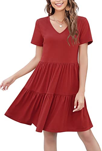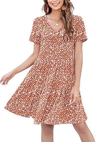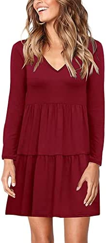 Match: Ruflle tunic flowy dresses for women is great pair with high heels, sandals or boots, tights, leggings, hat, or simply laying with coats, jackets in spring, fall and winter. You will leave a fantastic impression on vacation. Above knee length floral dress and flowy swing shift A-Line dress make you elegant and radiant. Super cute and beautiful babydoll mini dress can add your vitality and also nice for juniors dresses.