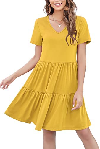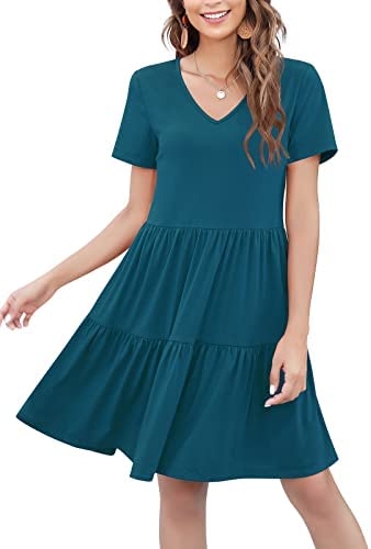 Features: Casual babydoll dress for women is flattering for any female body type. Dresses for women 2022 is looks great on petite and tall women and makes well-proportioned body looks, looks slimmer and taller. Stretchy waistband cinches at the waist, which can hide your tummy perfectly, dresses that hide belly fat, while the belt does not tighten. Feminine v neck mini dress with flowing hem are perfect for curvy women. Flowy pleated womens summer dresses will be your new favorite dress in 2022!