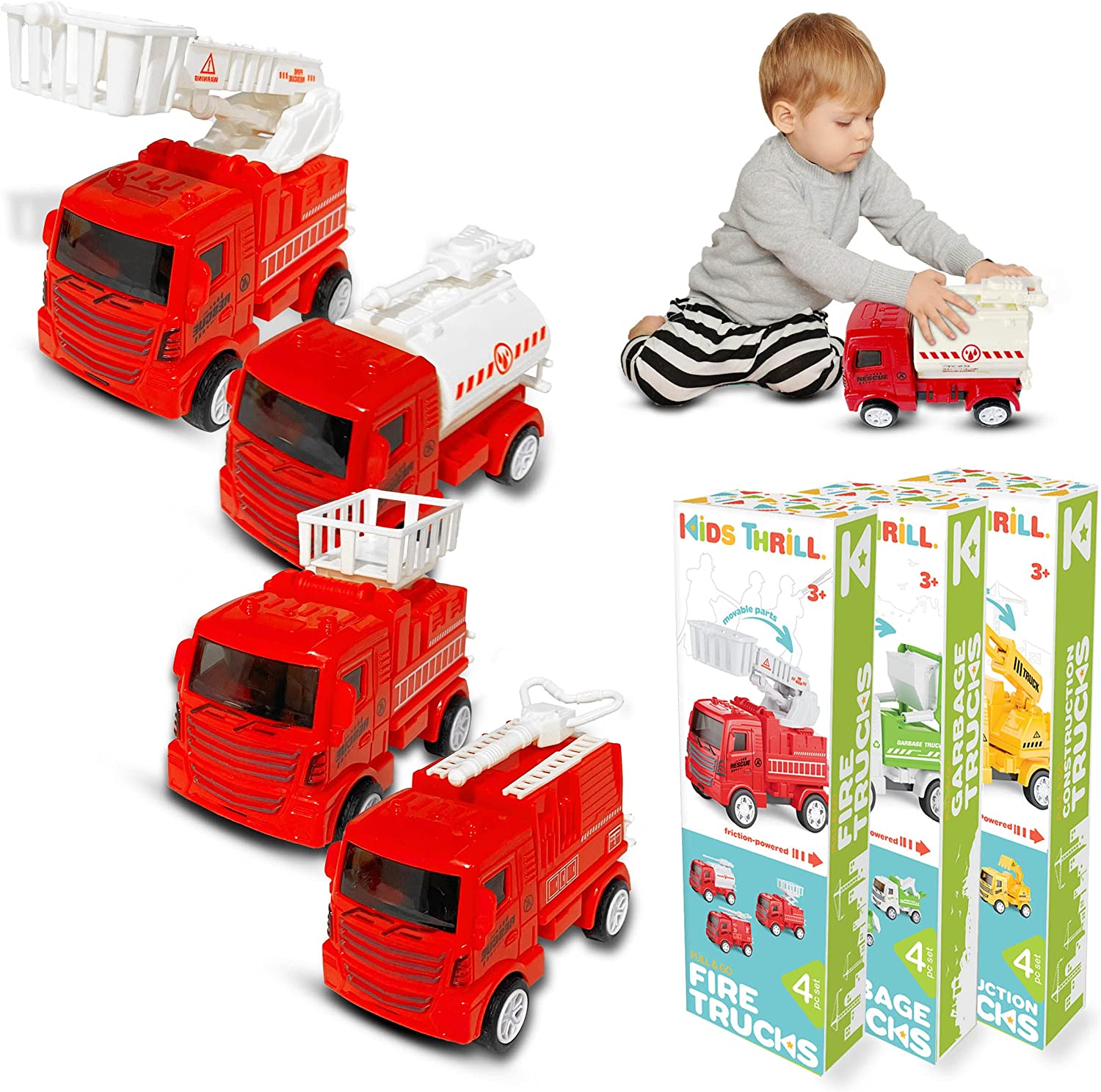 • Surprise Your Kiddo: Get this excellent set of firetruck cars for kids as a lovely Christmas or birthday present for your little angel! Surprise them with a classic set of toys that all kids love to play with. SATISFACTION GUARANTEED; If you don’t love our Toy trucks for toddlers 1-3, let us know what the issue is with your fire trucks for boys age 4-7, and we’ll do whatever it takes to make things right; At Kidsthrill, we pride ourselves on excellent customer service and outstanding quality