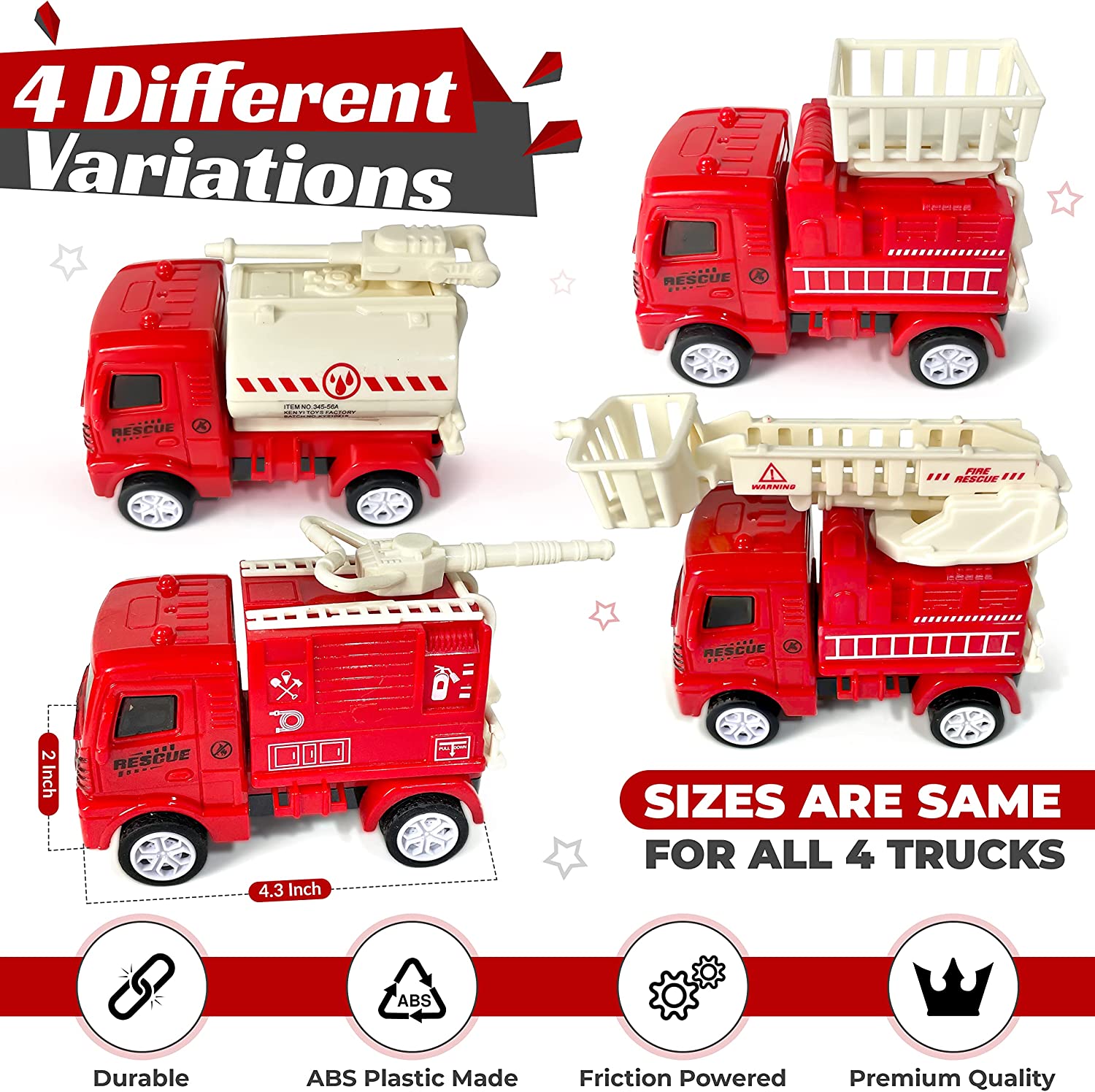 Kids Fire Trucks for Boys and Girls, four different kinds of Children’s fire truck toys for 3+ year old boys - Interactive Friction Powered, for 3-12-Year-Olds, Durable ABS Design Toy Truck