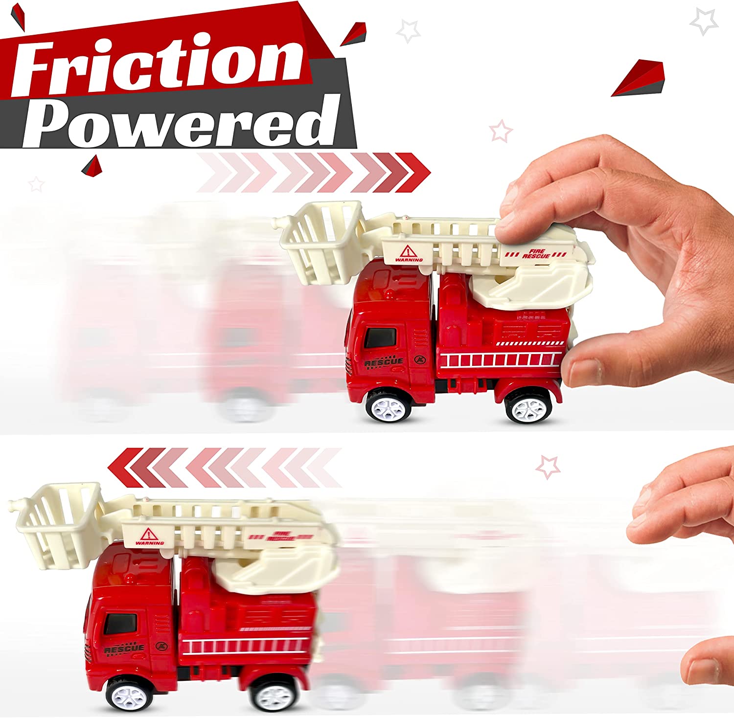 • Interactive Design: Our kids fire truck uses a fun friction-powered, battery-free design! This allows the little ones to play with their toy firetrucks for boys 3-5 years old in any way they want without ever getting bored.