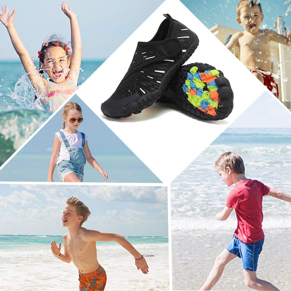 BREATHABLE ULTRA LIGHT:Our Kids water shoes its upper with stretch breathable ultra light weight fabric for creates a cooler and healthier.