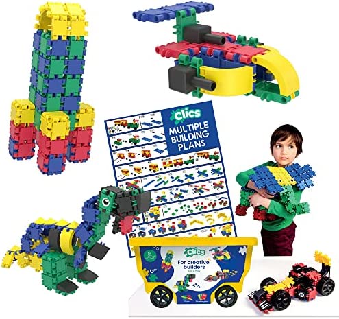 SIMPLE DESIGN - The creativity of your child will fuel because of these colorful blocks with a simple design. One shape has endless possibilities! Every block easily connects to the next. Create colorful flat mosaics or work in 3D to make more intricate constructions. Mix and match any Clics set to bring more ideas to life!