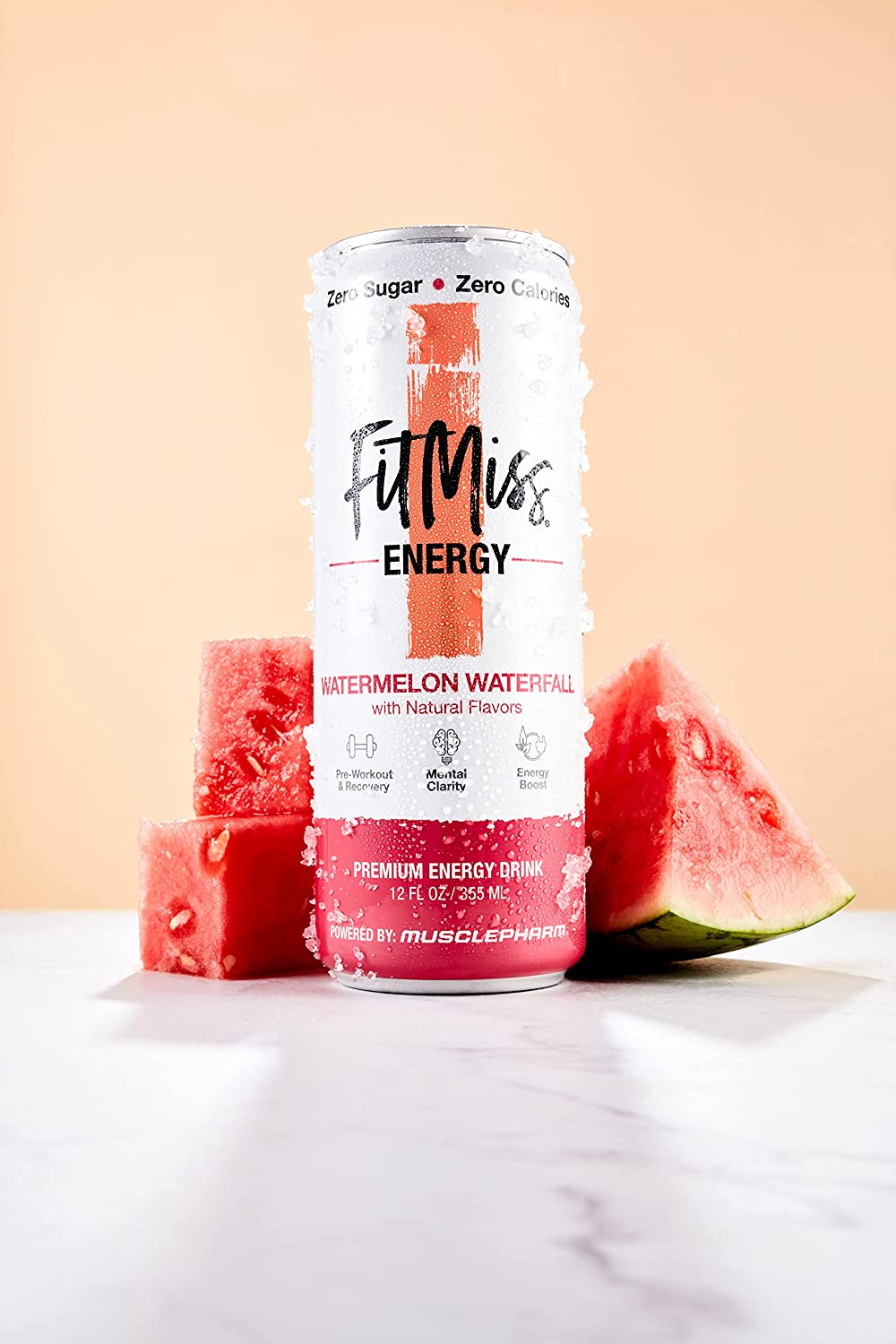MusclePharm FitMiss Energy Drink 12oz (Pack of 12) Variety Pack - Mango, Pineapple Coconut, Watermelon - Sugar Free Calories Free - Perfectly Carbonated with No Artificial Colors or Dyes