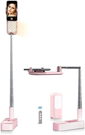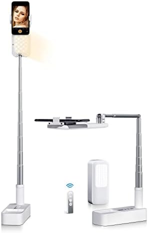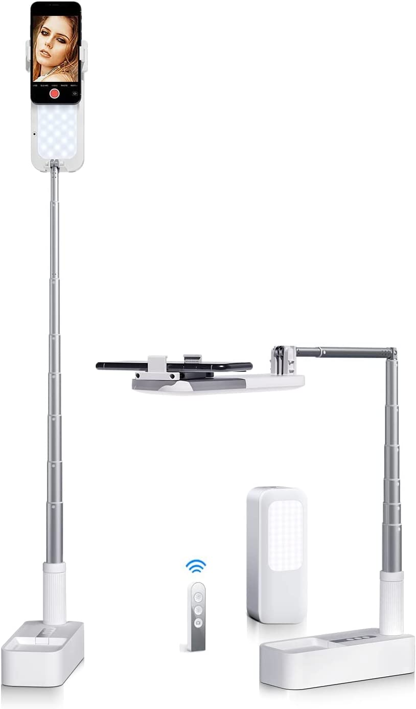 【Foldable Stand and Retractable Design】 This LED selfie holder has a one-piece foldable design, and its compact size makes it easy to carry anywhere. Can be used as a floor stand and expands to 49.2 inches. iPhone stand for video recording.