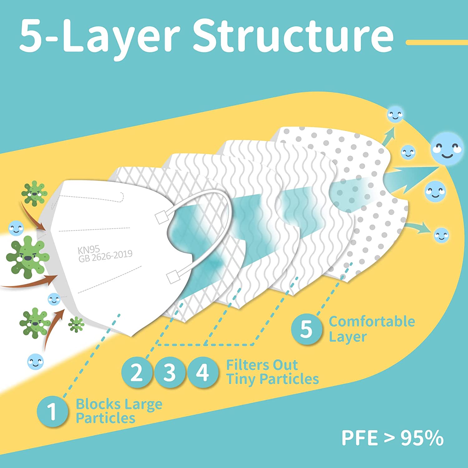 • Disclaimer: This KN95 mask is NOT an N95 mask. For more information about KN95 masks please see the following before you purchase: amazon.com/AboutKN95s.