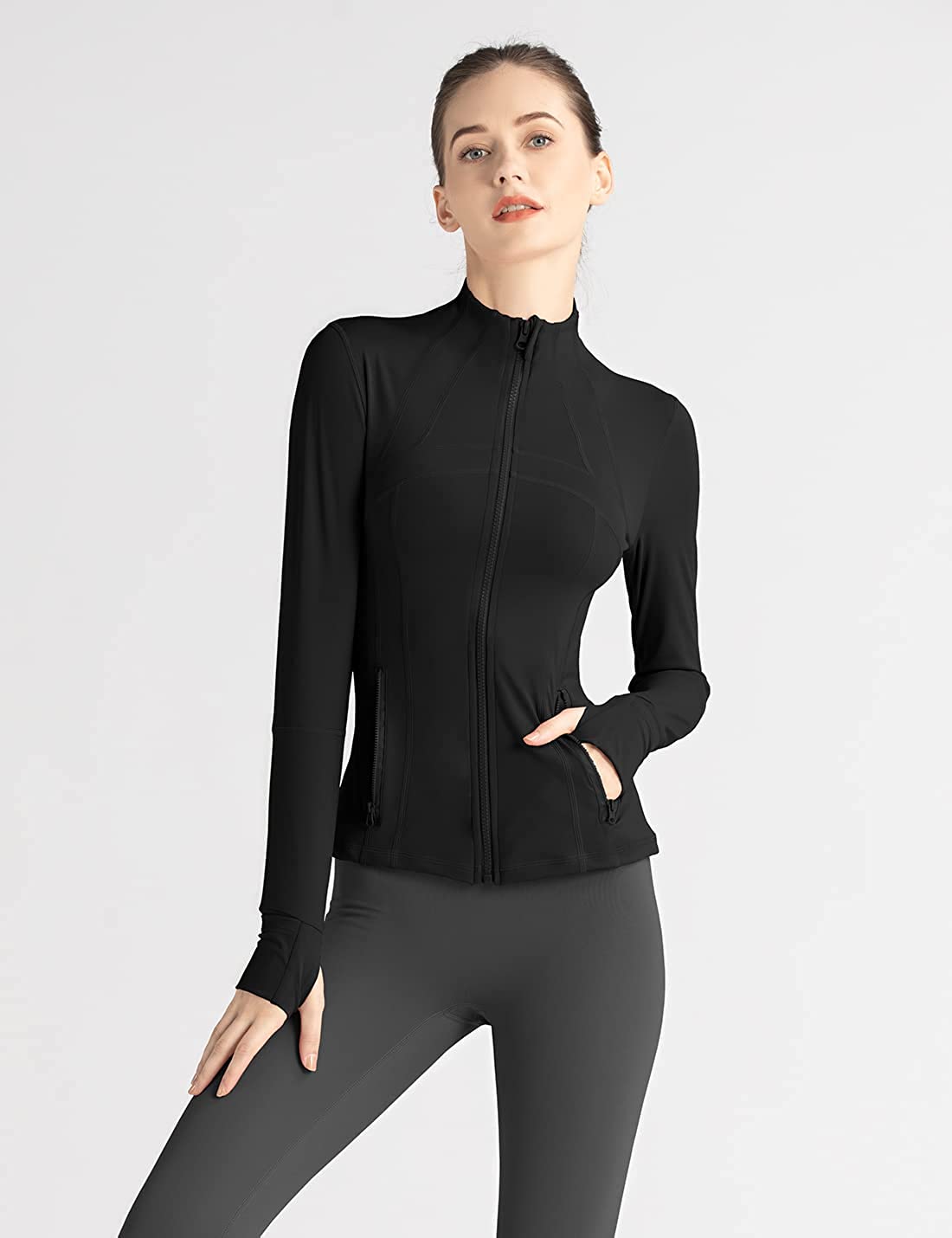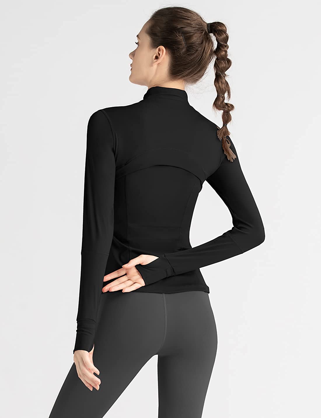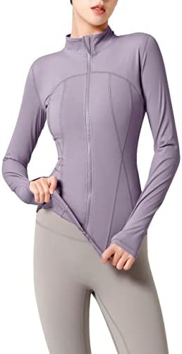 Gacaky Women's Slim Fit Workout Running Track Jackets Full Zip-up Yoga Athletic Jacket with Thumb Holes