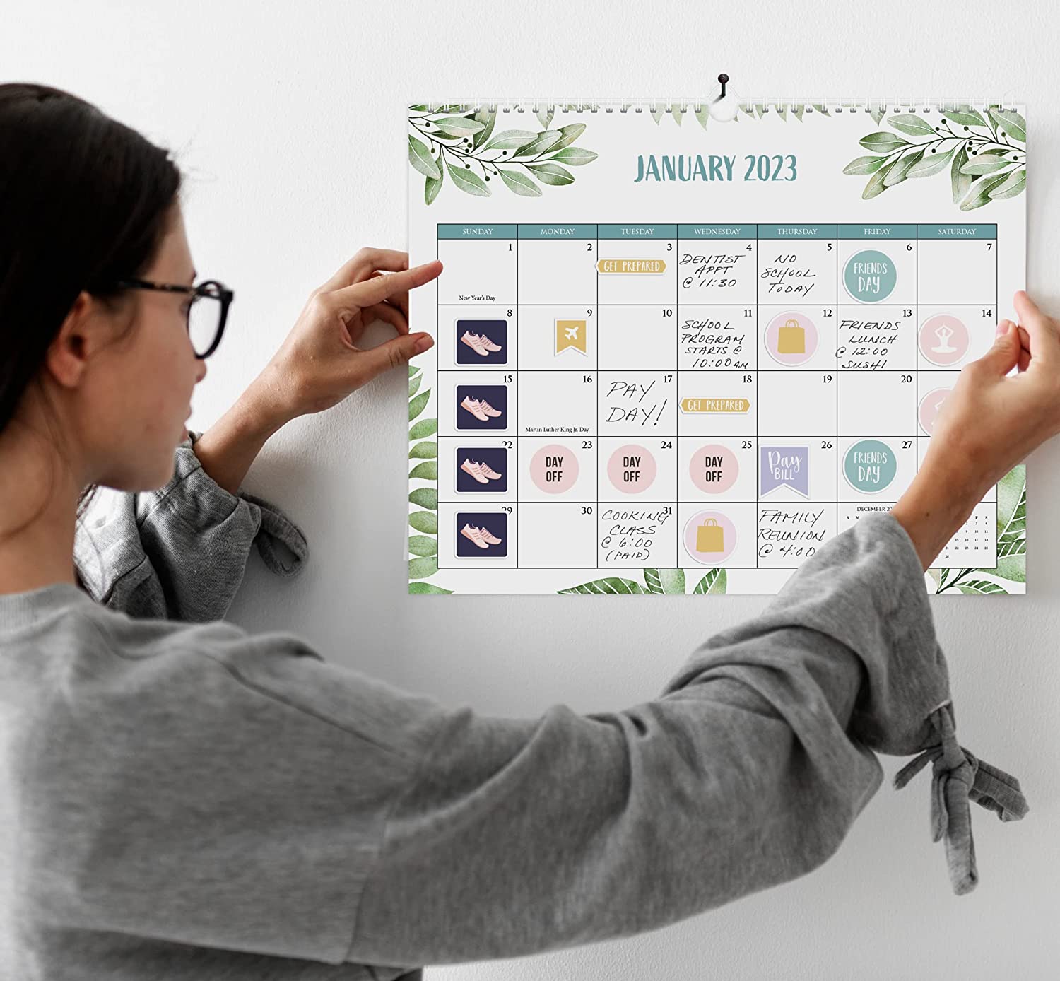 • Be Organized & Stay On Top Of Things: With the gorgeous greenery wall calendar (14.5" x 11.5") planning ahead & boosting your productivity is super easy! See all appointments, deadlines, birthdays, US holidays & other dates (Valentine’s Day, lovebirds!) at a glance