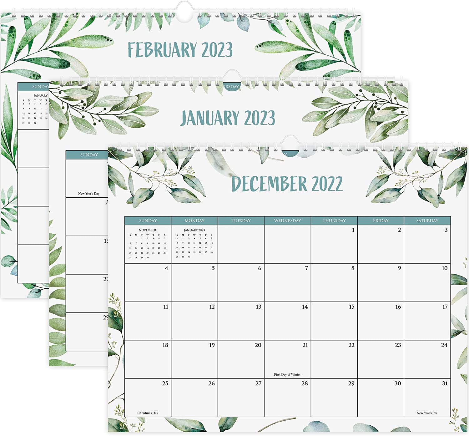 • Lovely Greenery Design: Besides being a premium planning tool, the wall calendar is a beautiful decoration for your wall; 3 repetitive artistic greenery designs add a relaxed atmosphere to your office, home or classroom
