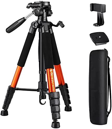 【Professional 3-Way Pan Head】VICTIV Professional camera tripod stand is equipped with a stable and smooth 3-way pan head, it allows 360° horizontal panoramic shots, 180° up and down shots, and 90° vertical portraits. Non-slip pads provide great grip. You can also hang a backpack on the weight hook for extra stability.