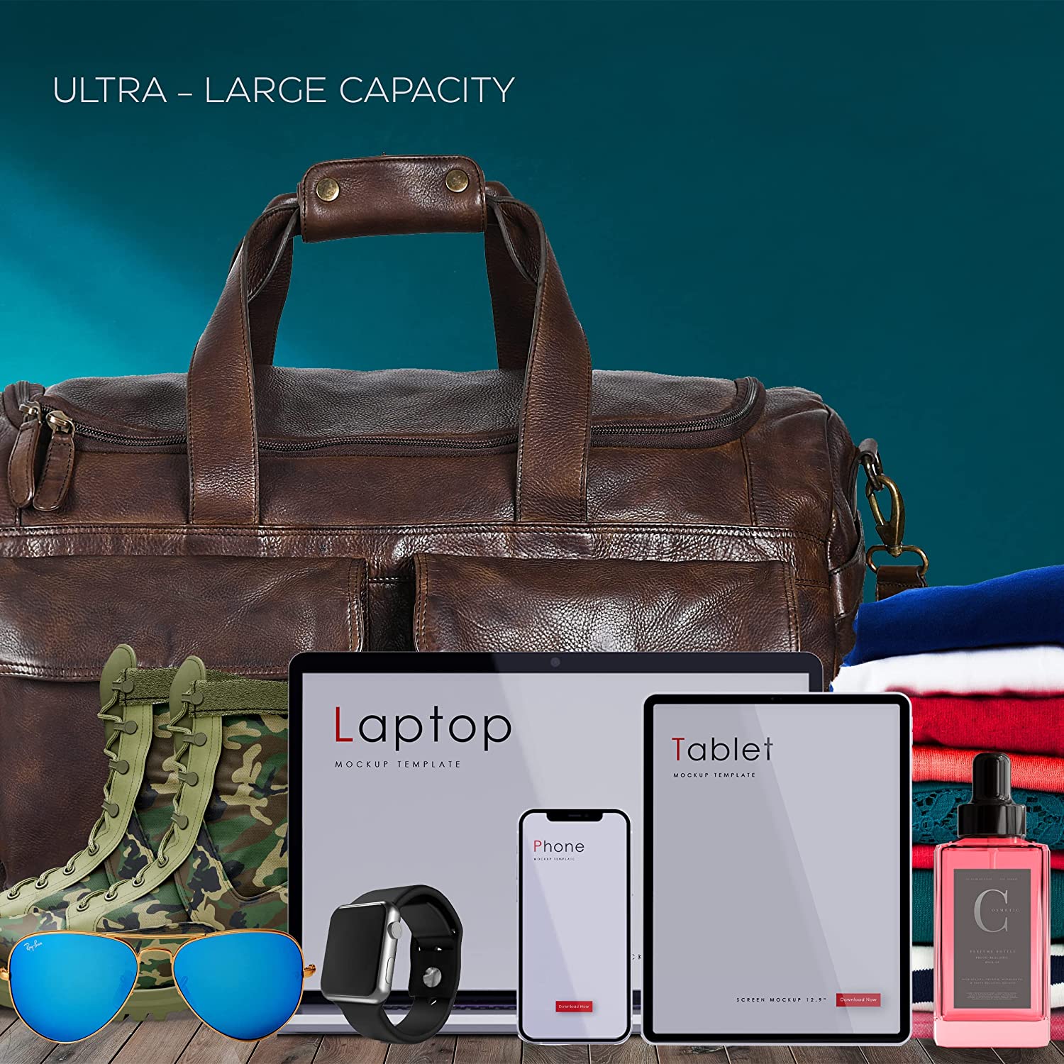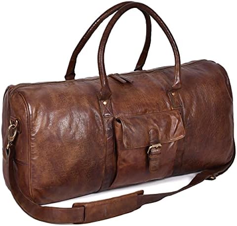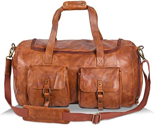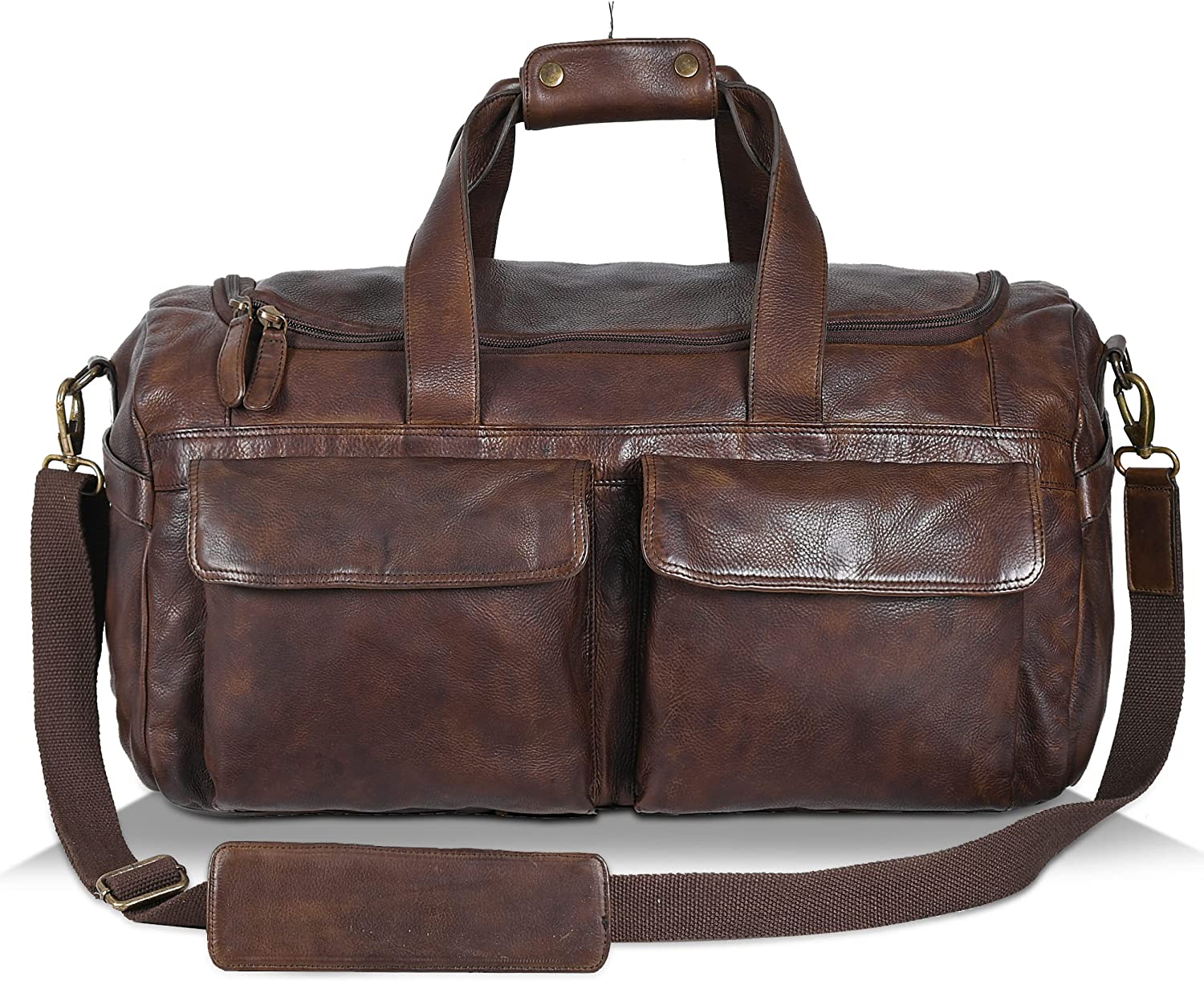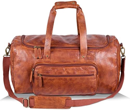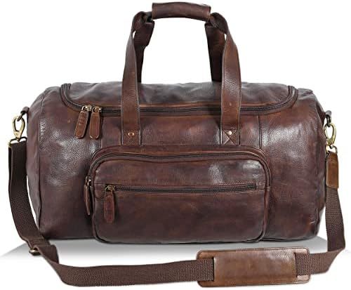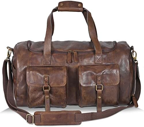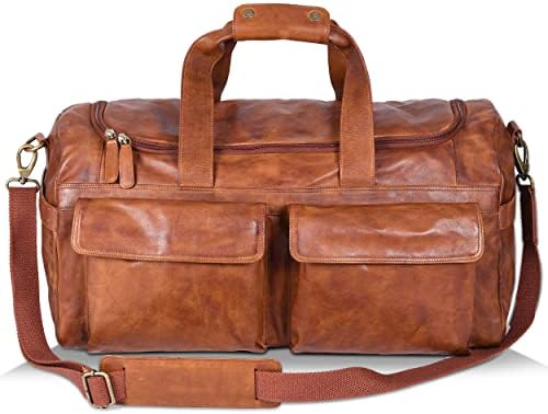 • Compact Structure & Multi Functional: You wanted the bag to be organized and we did so that you do not have to search for anything. Pockets tactically designed to store all your accessories. This 20-Inch leather duffel features 1 inner zip pocket,1 mobile pocket,Additional small pocket to hold valuable things. Features an adjustable shoulder strap of 20-26 inches with a padded pad .