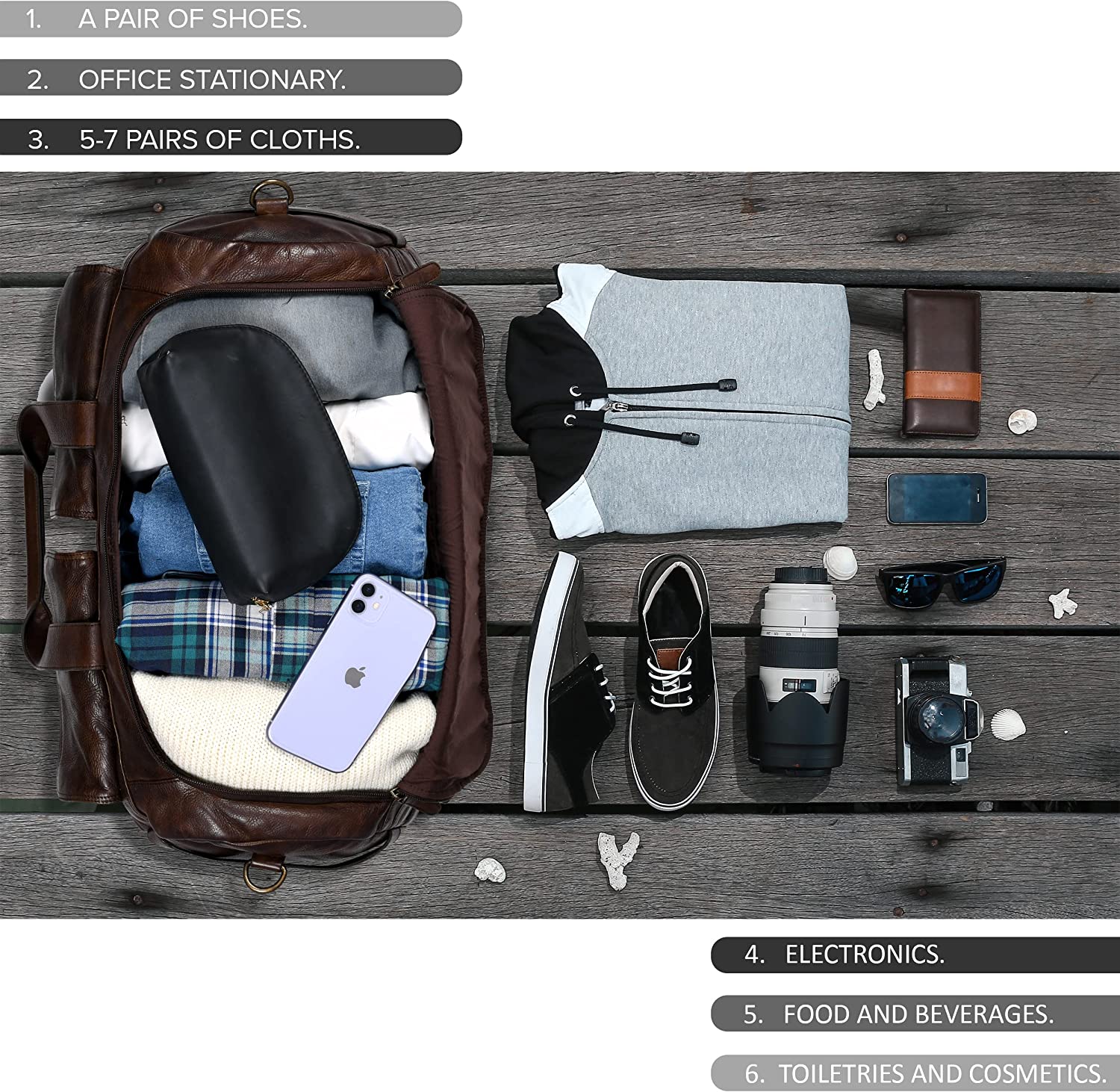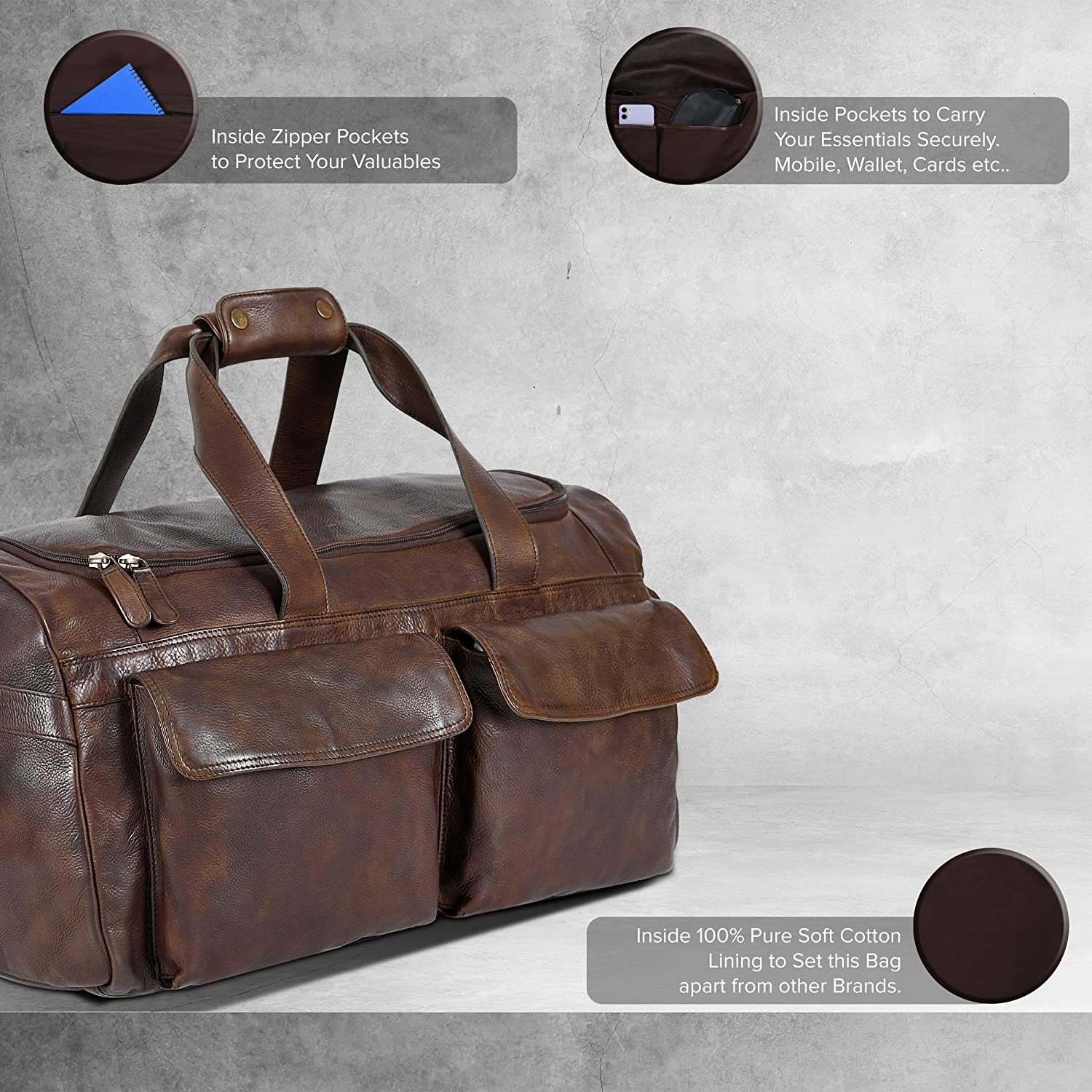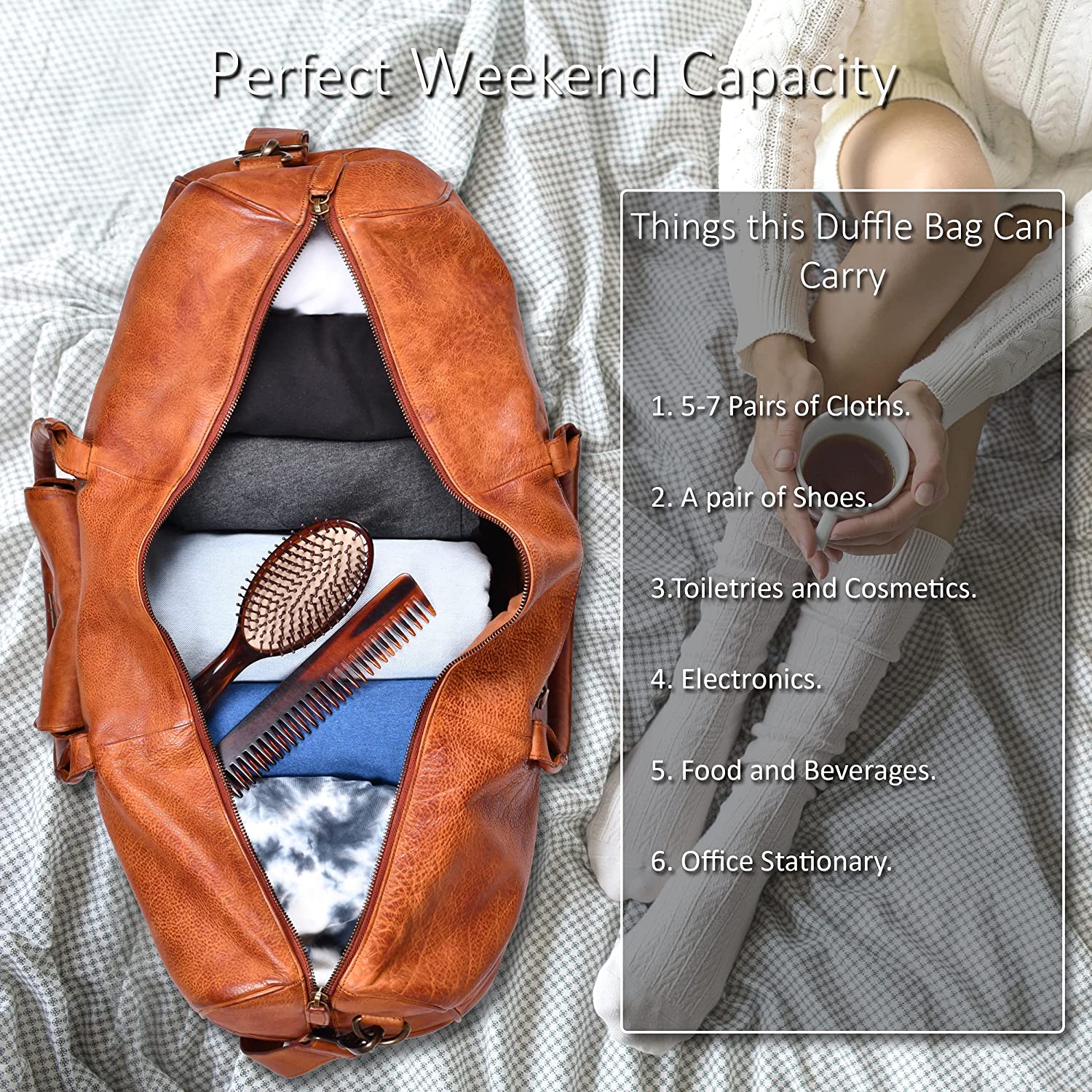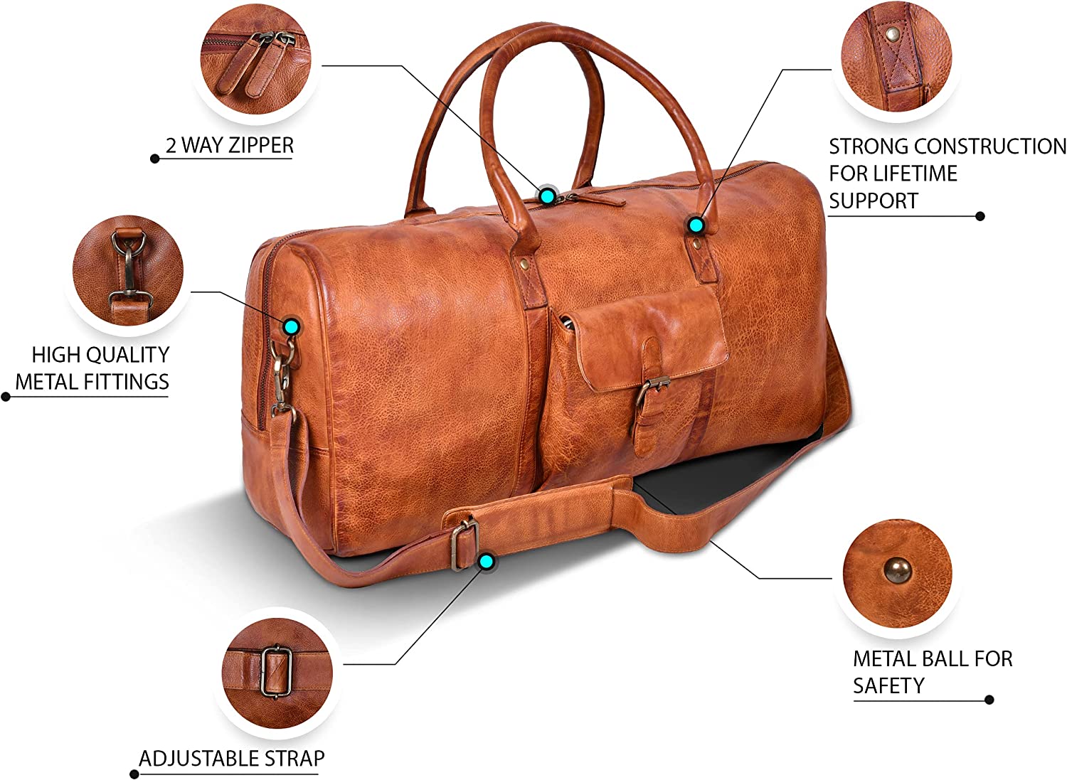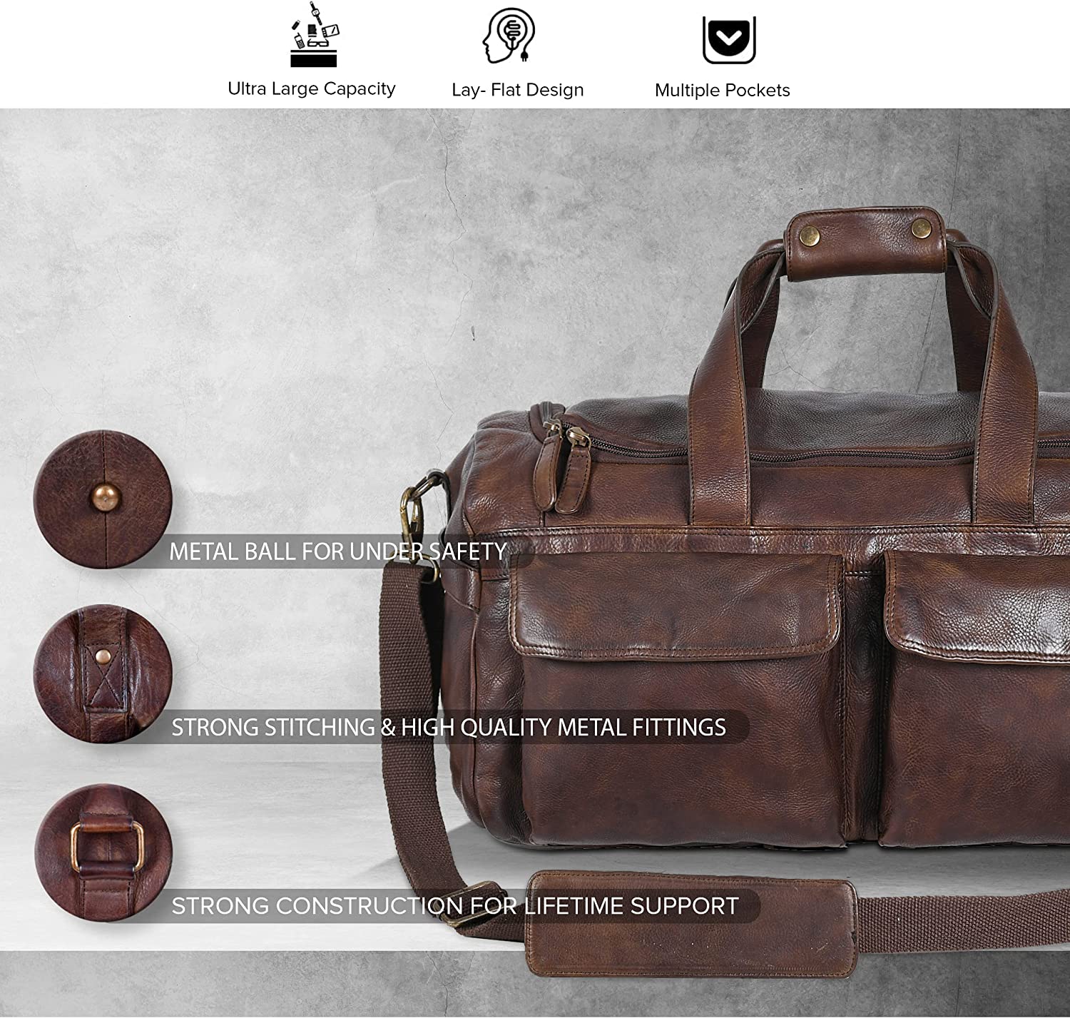 • High Quality Leather Duffel Bag:Top Grain leather and strong stitching make this bag a durable partner for you travels. A partner that ages well with you. It develops a unique relationship with you by developing patterns that are unique to your usage style. Our vintage design brings the essence of class to your style statement.