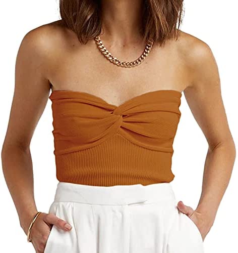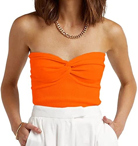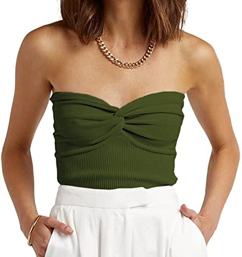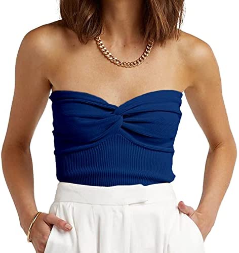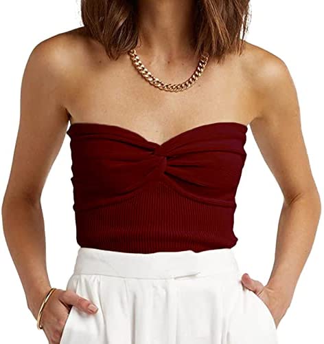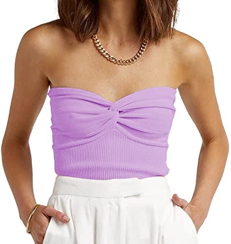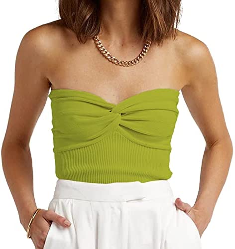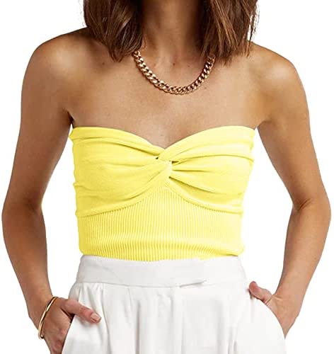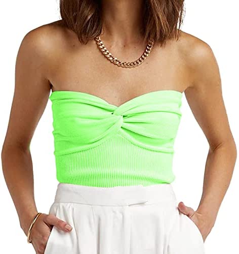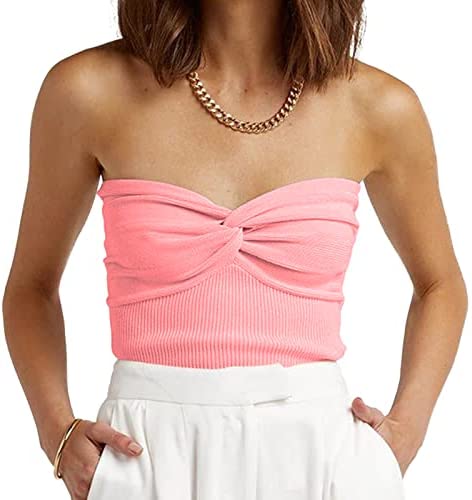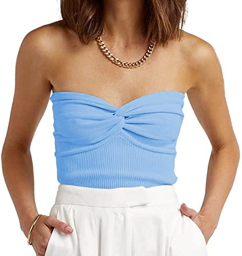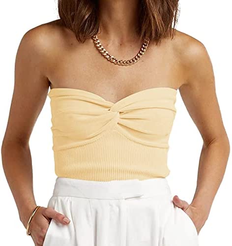 Womens Crop Camis Feature: Strapless, Sleevess, Twisted Knot Front,Ribbed Knit,Sweetheart Neckline,Scoop Underbust, Keep you trendy, flattering and eye-catching at any time and anywhere.
