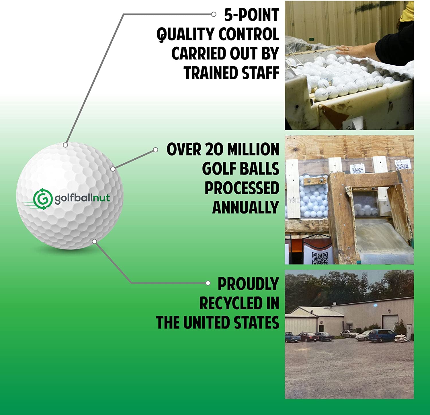 STRAIGHT TO THE POINT! While helping the environment stay clean and making golf affordable. From the fairways to the water hazards buying bulk recycled golf balls' helps cut the cost of your game and help improve your numbers. While giving the golfer a world where they can get a great deal on bulk buying refinished golf balls.