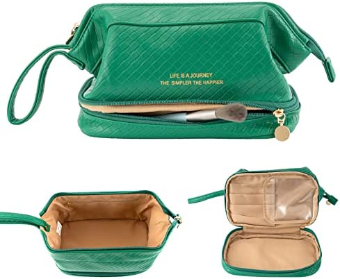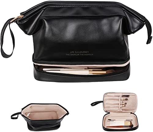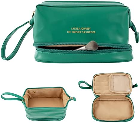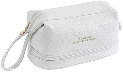 Large Makeup Bag,Double Layer Cosmetic Bag,Travel Makeup Bag,Leather Makeup Bag, Cosmetic Travel Bags,Portable Leather Toiletry Bag,Roomy Cosmetic Bag for Women and Girls.White