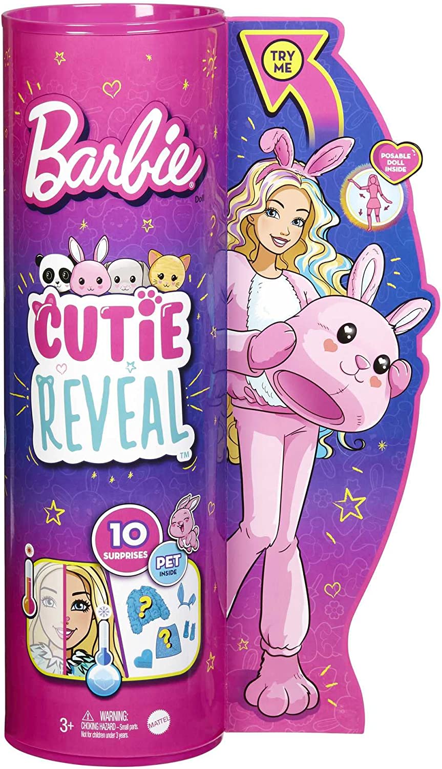 Barbie Cutie Reveal Doll, Bunny Plush Costume, 10 Surprises Including Mini Pet & Color Change