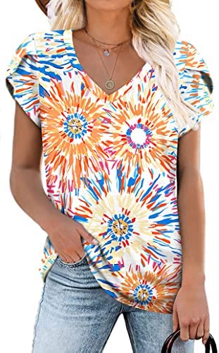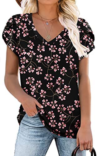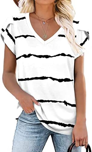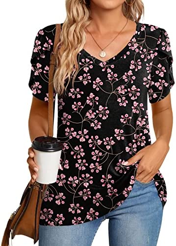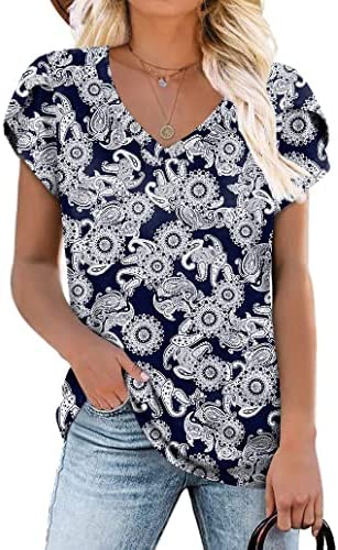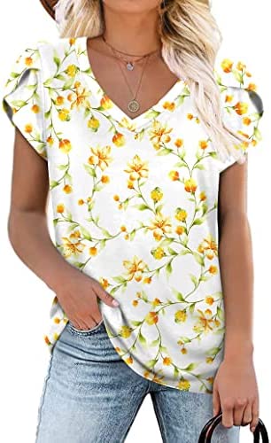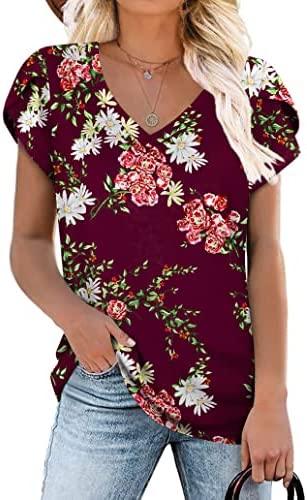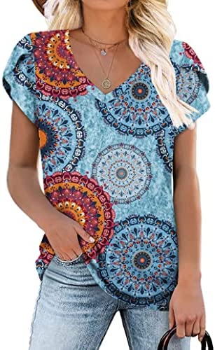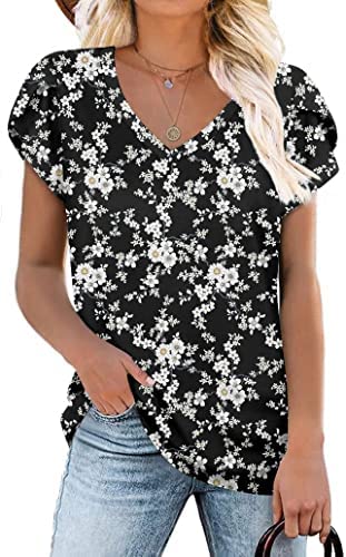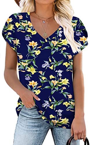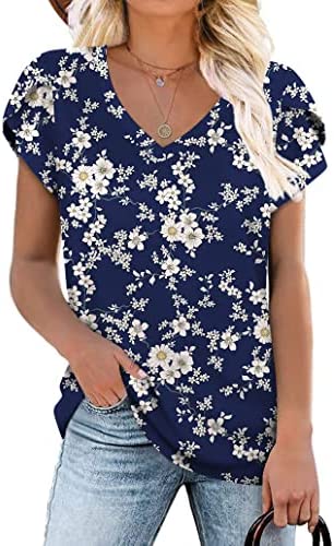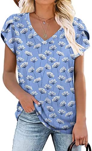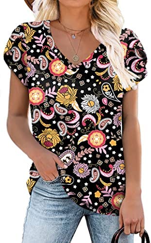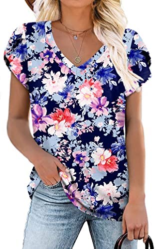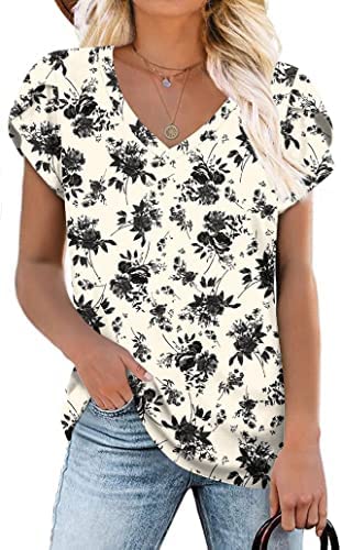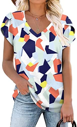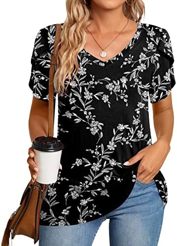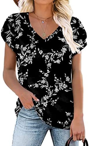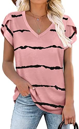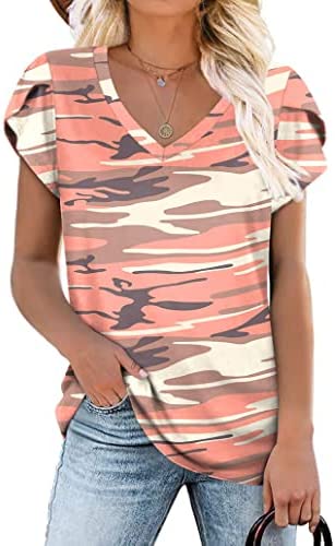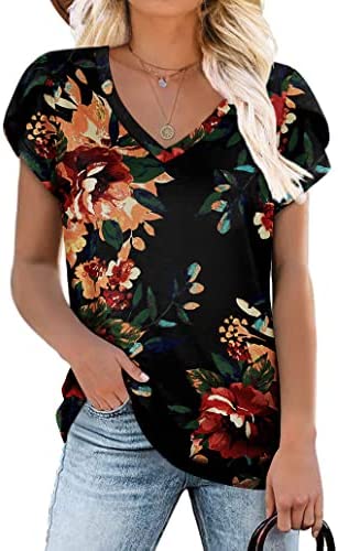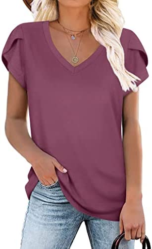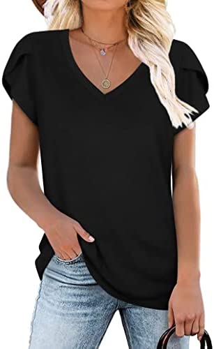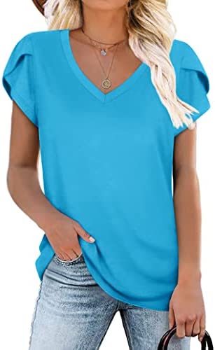 ❤ 【 Features 】 casual tunic top, v neck tops tee, petal short sleeve tshirts, stretch loose blouse, solid color and print, on the hip length, sexy, plain, trendy and elegant.