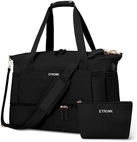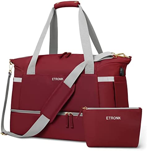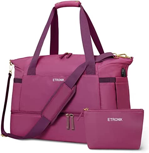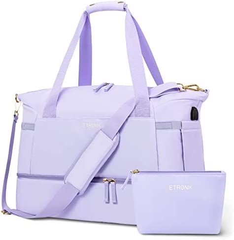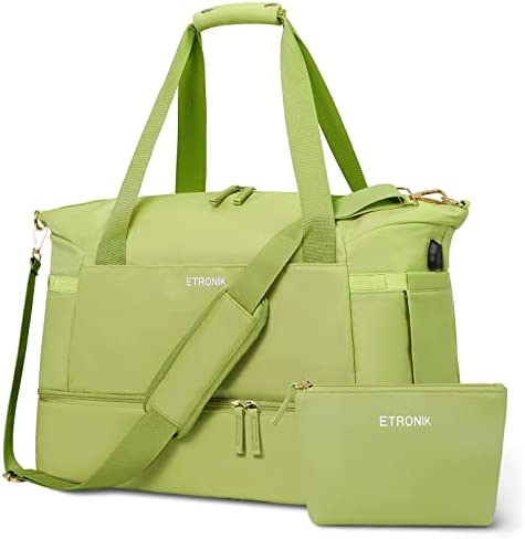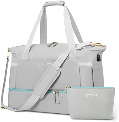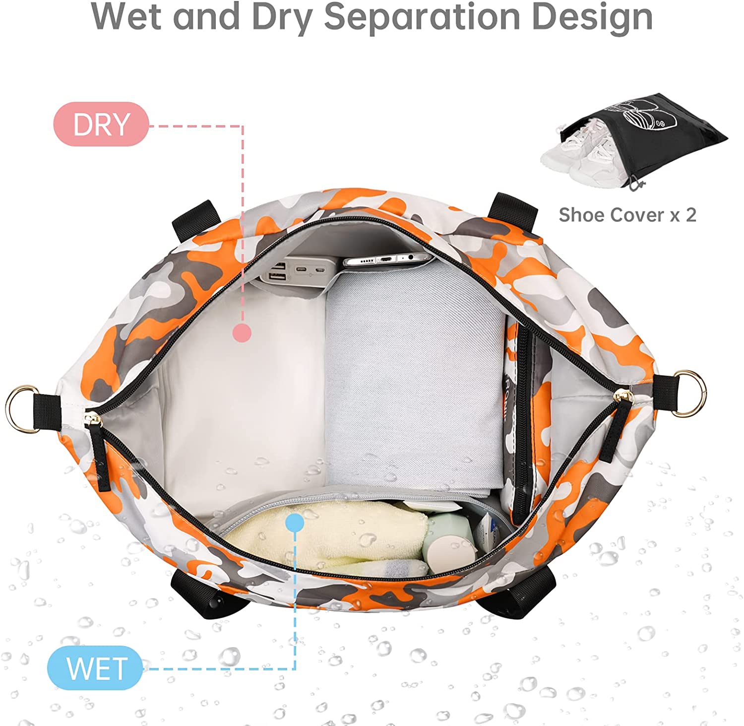 • ✅【Dry Wet Separate Duffel Bag】:This duffle bag for women delivers roomy main compartment to store your clothes and items. A zippered waterproof PVC lined pocket for wet clothes or towels and swimsuits. In addition, this travel duffel bag also gives an extra small makeup bag for easy storage.