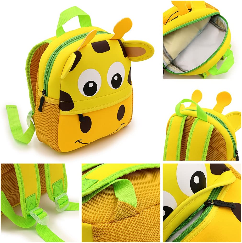 Hipiwe Little Kid Toddler Backpack Baby Boys Girls Kindergarten Pre School Bags Cute Neoprene Cartoon Backpacks for Children 1-3 Years Old,Size 9.45"x3.54"x9.84"(Giraffe)