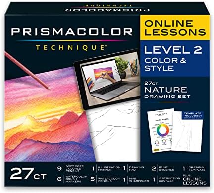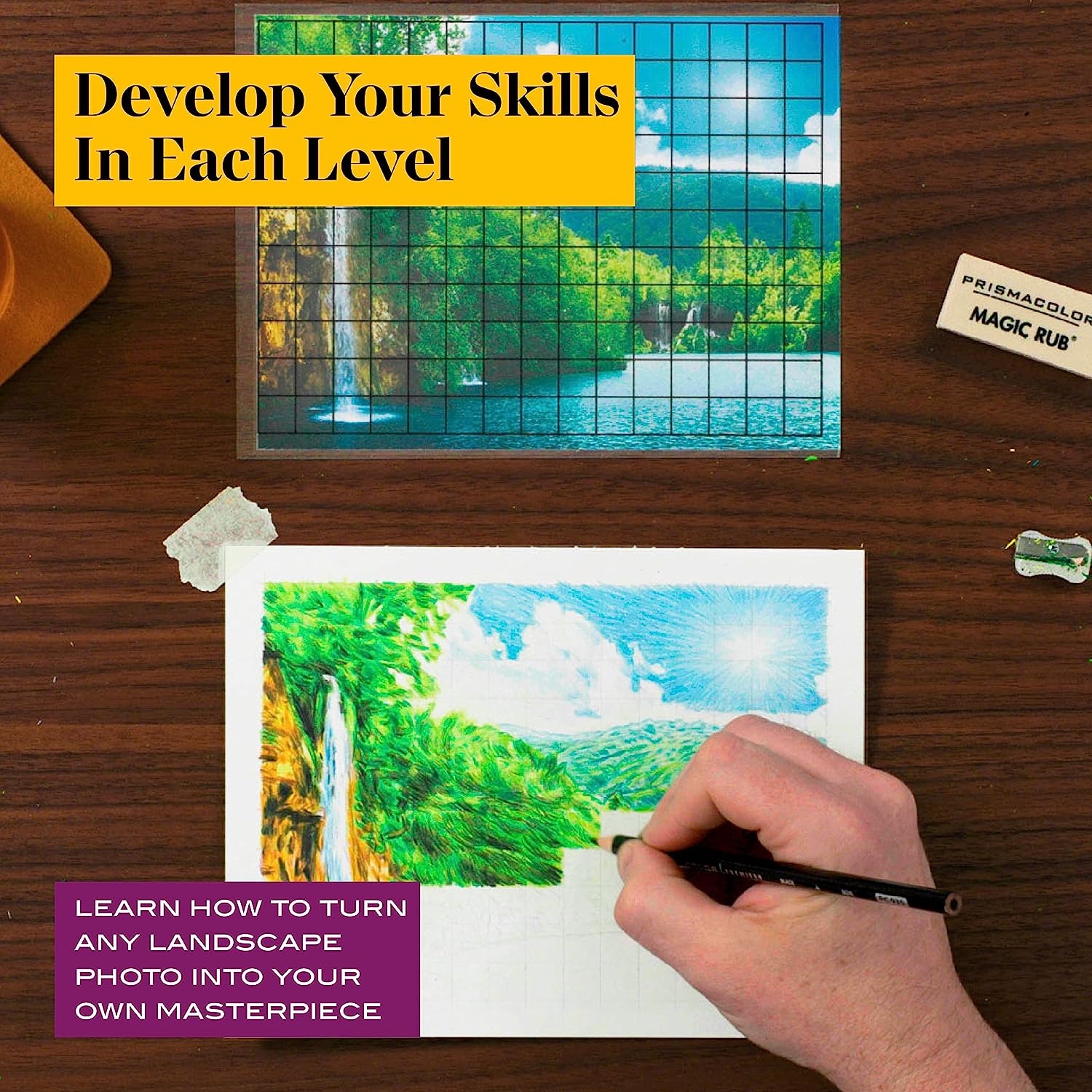 Prismacolor Technique, Art Supplies and Digital Art Lessons, Nature Drawing Set, Level 3, Learn to Draw with Colored Pencils, and More, Includes Artist Roll Case, Waterfall Landscape Drawing, 28 Count