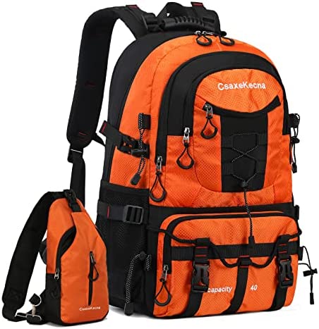 - *Large capacity multi compartment backpack: outdoor backpack with 40 liters of storage space (20.5 inches x 13.5 inches x 7.5 inches). The backpack has a multi compartment design, including a main zipper compartment, a zipped front pocket, two front zipper pockets and two side zipper pockets. One of the 15.5-inch compartments is convenient enough to accommodate the main laptop. Large capacity helps you easily organize all your important items.