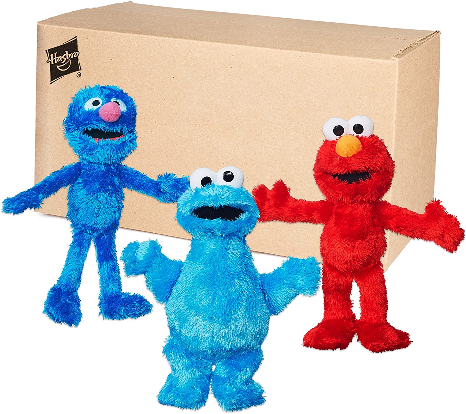 Cuddle up to fun with some favorite characters from Sesame Street! This bundle includes 1 Elmo plush, 1 Cookie Monster plush, and 1 Grover plush. The mini pals are sized right for preschoolers to take on the go. With this soft set, kids can begin to create their own storytelling adventures from Sesame Street! Sesame Street and associated characters, trademarks, and design elements are owned and licensed by Sesame Workshop. Hasbro and all related terms are trademarks of Hasbro.