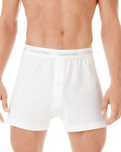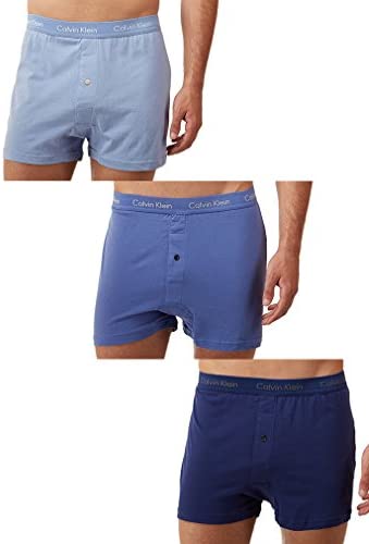Cotton knit boxers multipack, classic fit with updated elastic for extra comfortable leg openings and a soft, breathable, durable cotton blend waistband with iconic Calvin Klein logo. Button functional fly 3-pack.