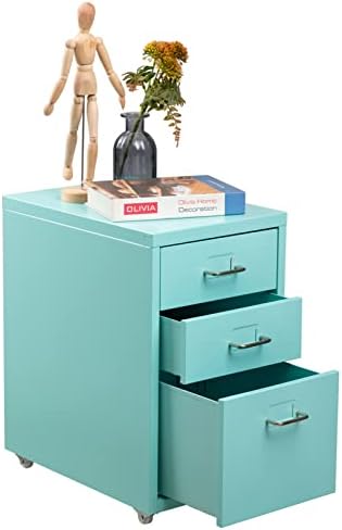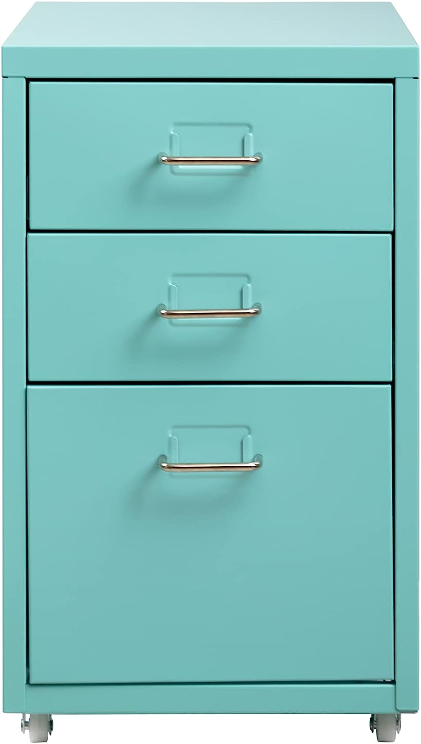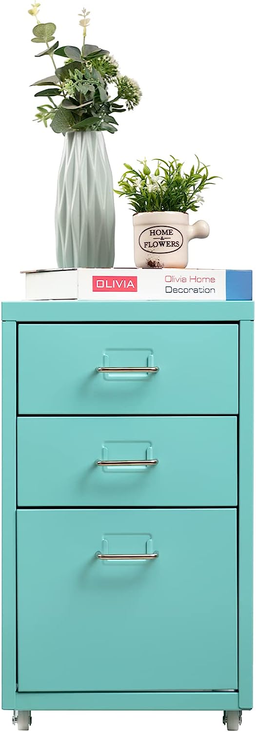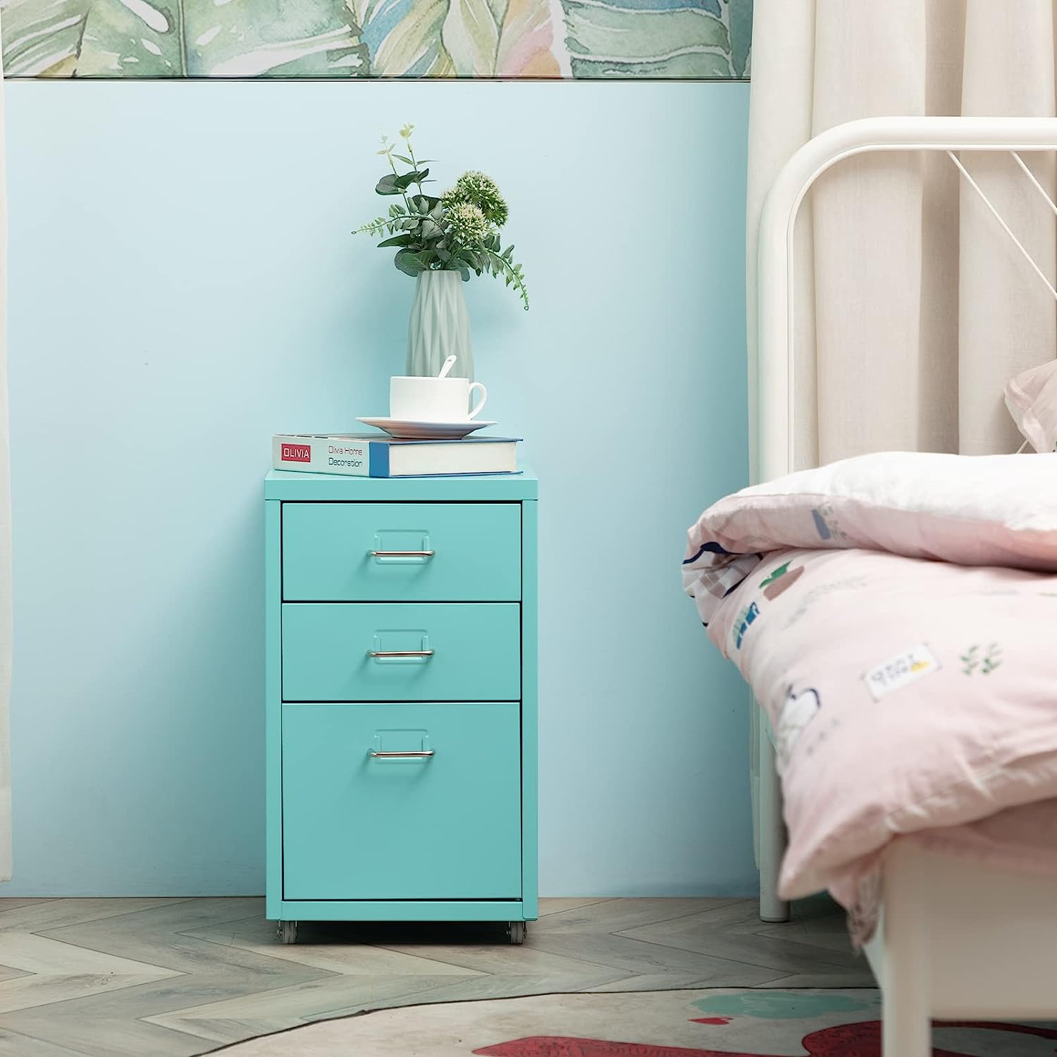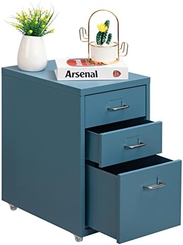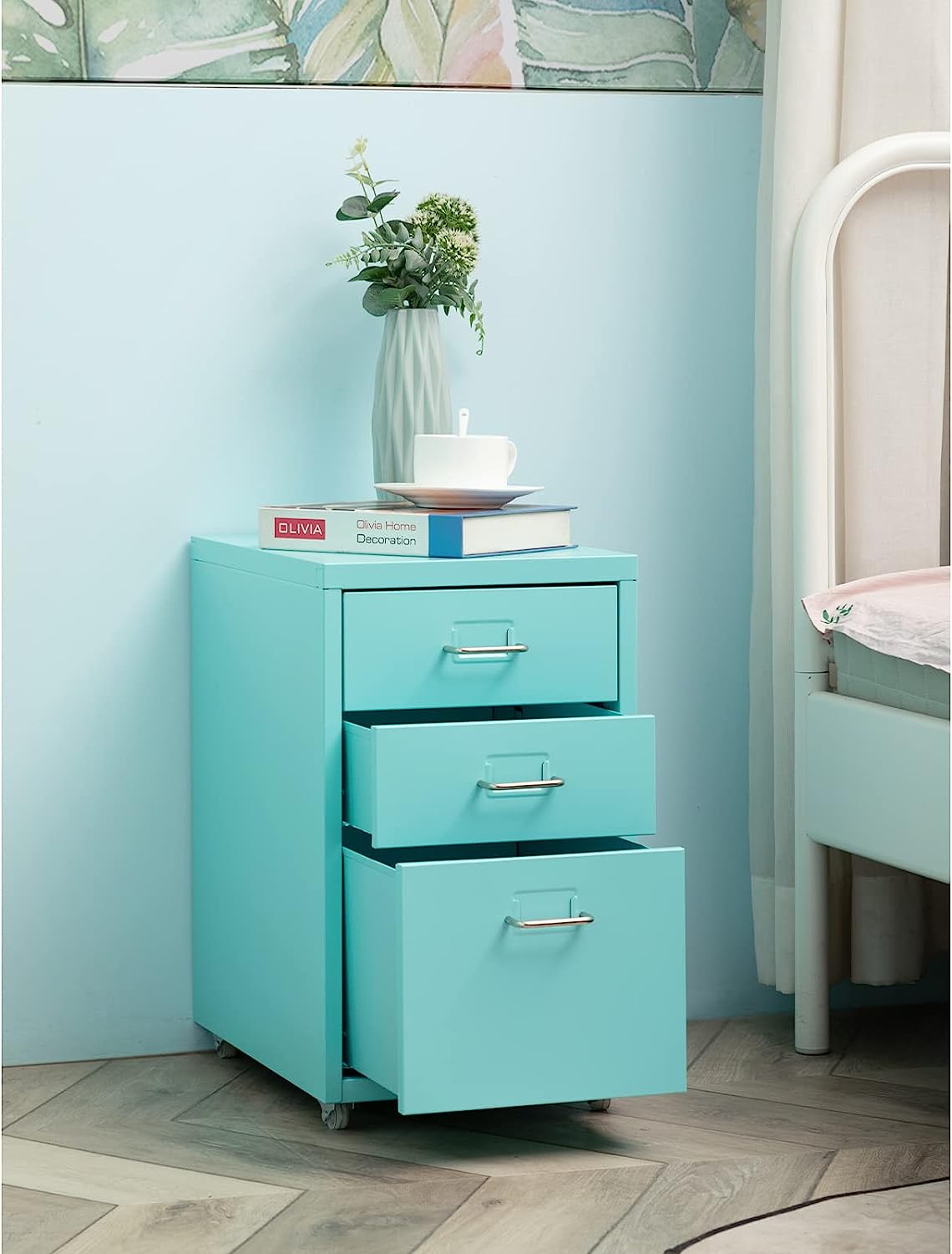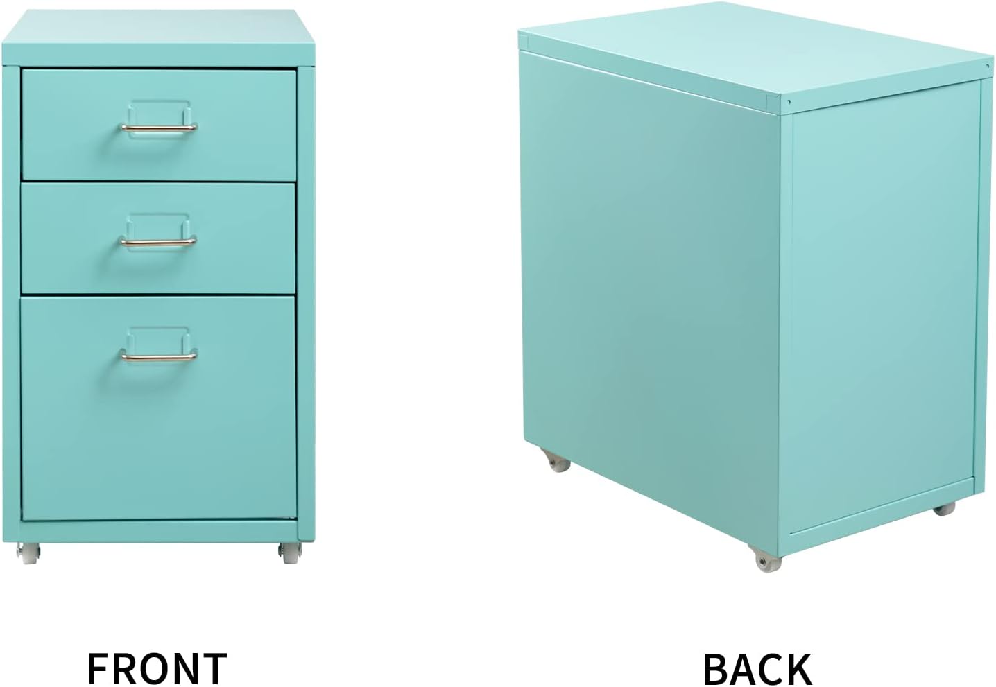 HollyHOME 3-Drawer Mobile Classification Storage Cabinet, Under Desk Mini File Cabinet, Metal Storage Cabinet with Casters for Home and Office, Blue