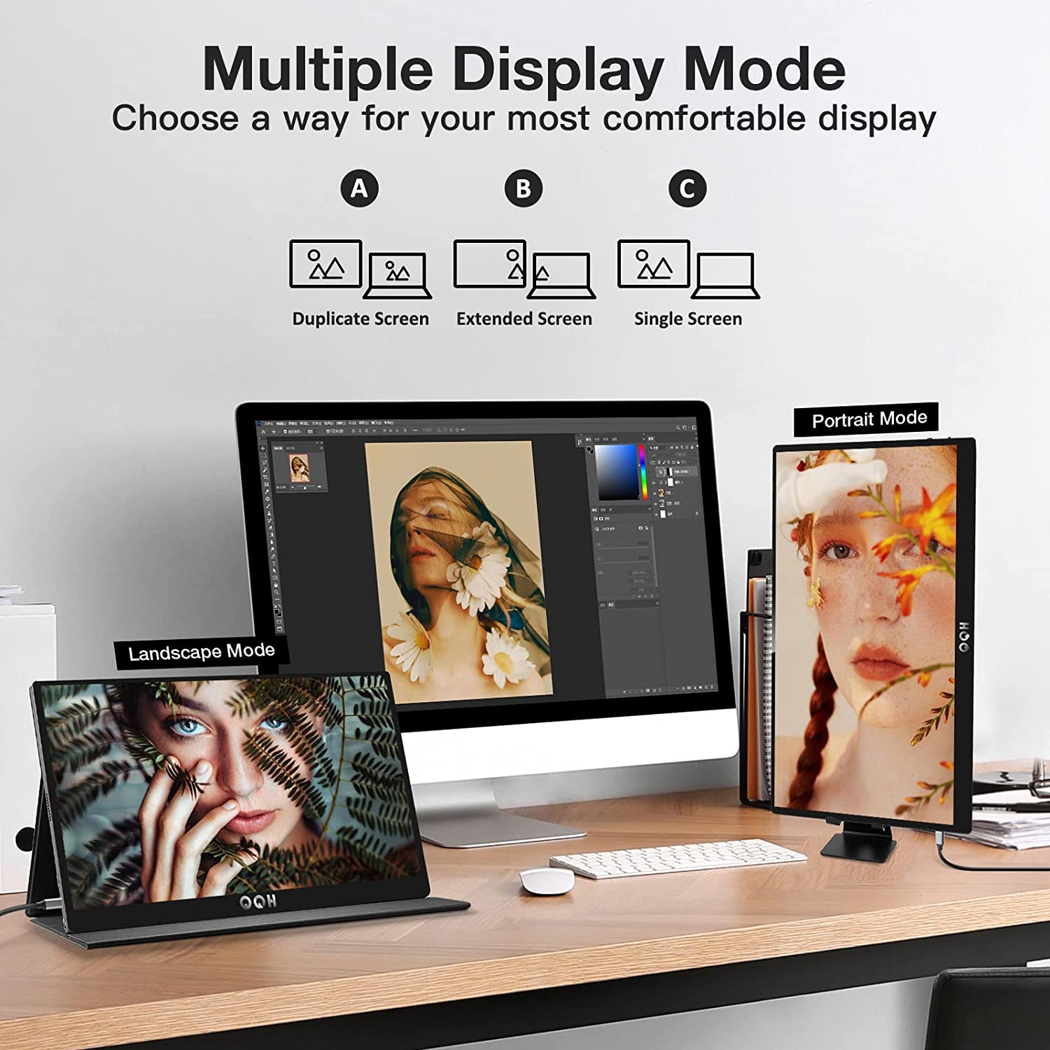 • Multiple Functions for Your Comfort - QQH usb c laptop monitor screen extender with multiple display modes [Duplicate/Extend/Second Screen/Portrait]. Boosting your productivity anytime, anywhere. HDR mode can give you more realistic visual enjoyment, brighter highlights, stronger contrast, delivering a stunning viewing/gaming experience. Built-in dual speakers, 3.5mm audio jack, fully realized OSD Menu and other functions, QQH portable monitor can be your great gaming/working/travel partner.