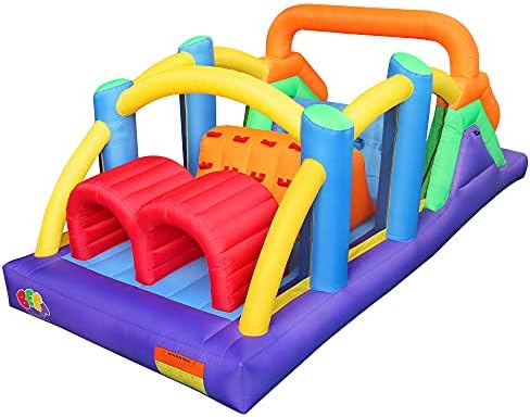 BESTPARTY Inflatable Obstacle Course Bounce House Castle with Large Slides Bounce Area and Obstacles Inflatable Bouncer House Jumper with Blower