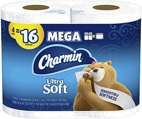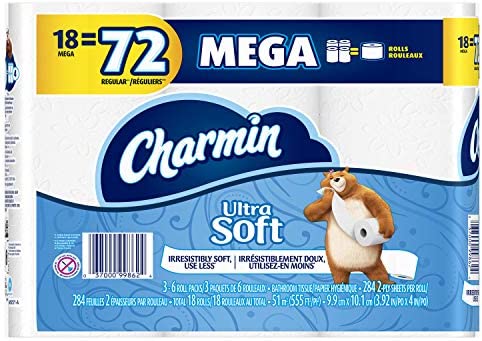 Pack contains 30 Family Mega Plus Rolls (313 Sheets Per Roll) of Charmin Ultra Soft Toilet Paper