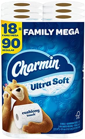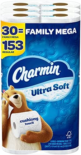 Charmin Ultra Soft Cushiony Touch Toilet Paper, 30 Family Mega Rolls = 153 Regular Rolls