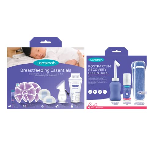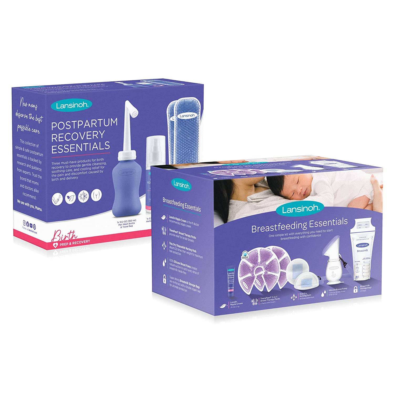 Lansinoh Breastfeeding Essentials for Nursing Moms: Nipple Cream, 48 Nursing Pads, 25 Breastmilk Storage Bags, 2 Hot & Cold Breast Therapy Packs, Silicone Breast Pump, 77 Pieces, Baby Shower Gift