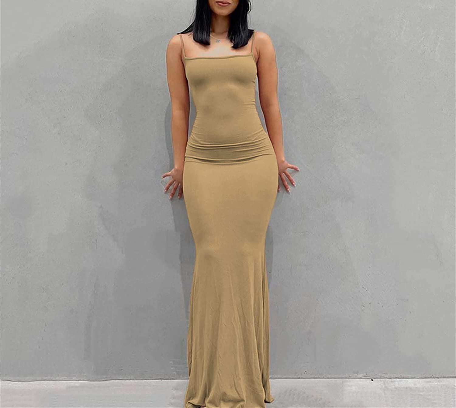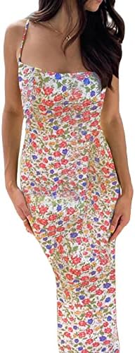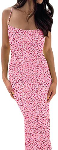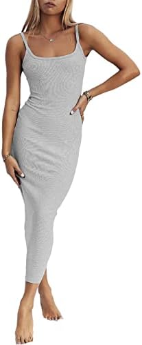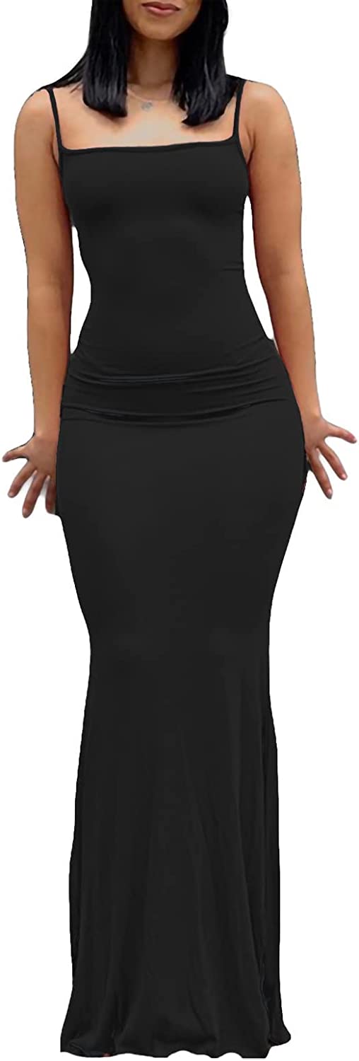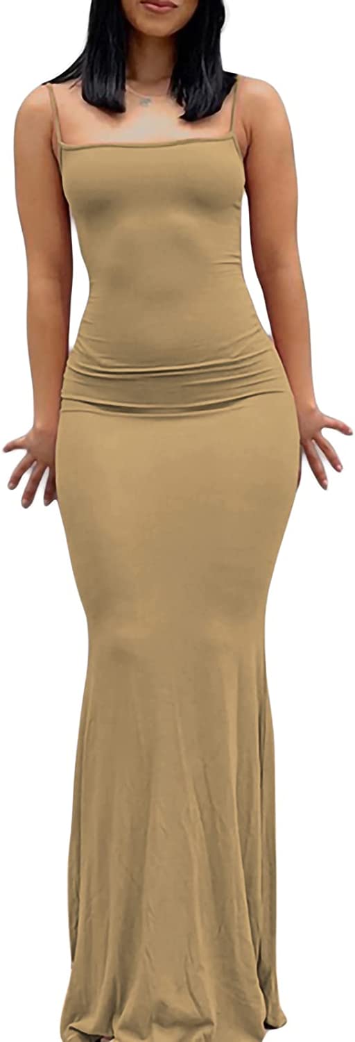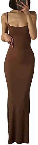 Women Spaghetti Strap Casual Maxi Dresses Sleeveless Cami Dress Party Club Bodycon Dress