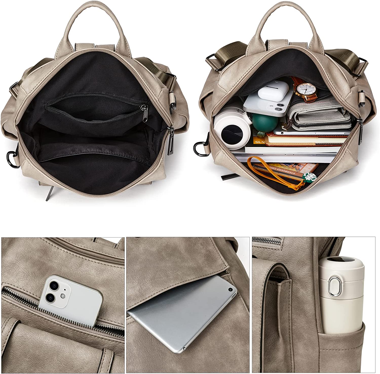• 【HIGH-QUALITY MATERIAL】The backpack purse for women is made of sturdy and soft PU leather, zippers slide nicely and straps are very durable, comfortable and good quality. The snaps are magnetic and all the stitching has been done well.