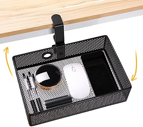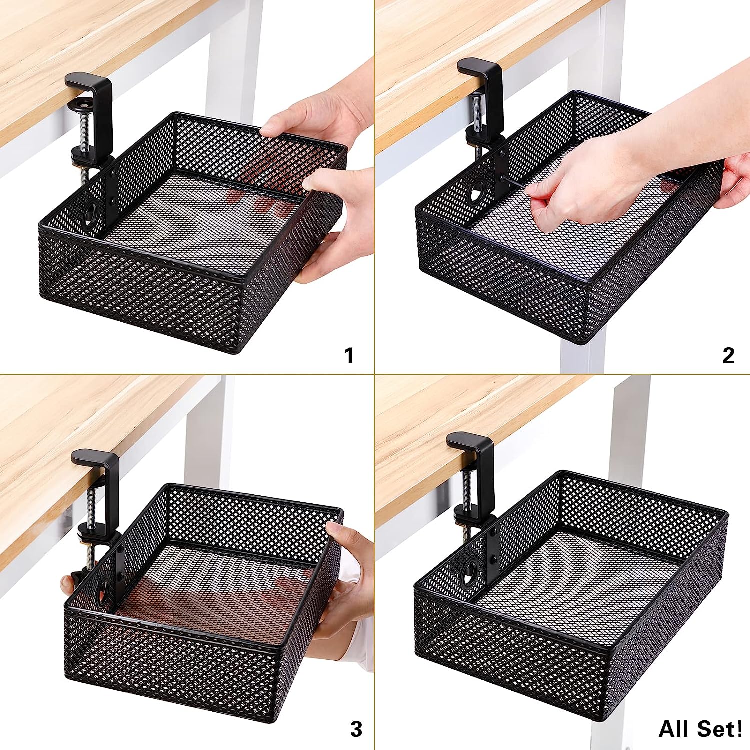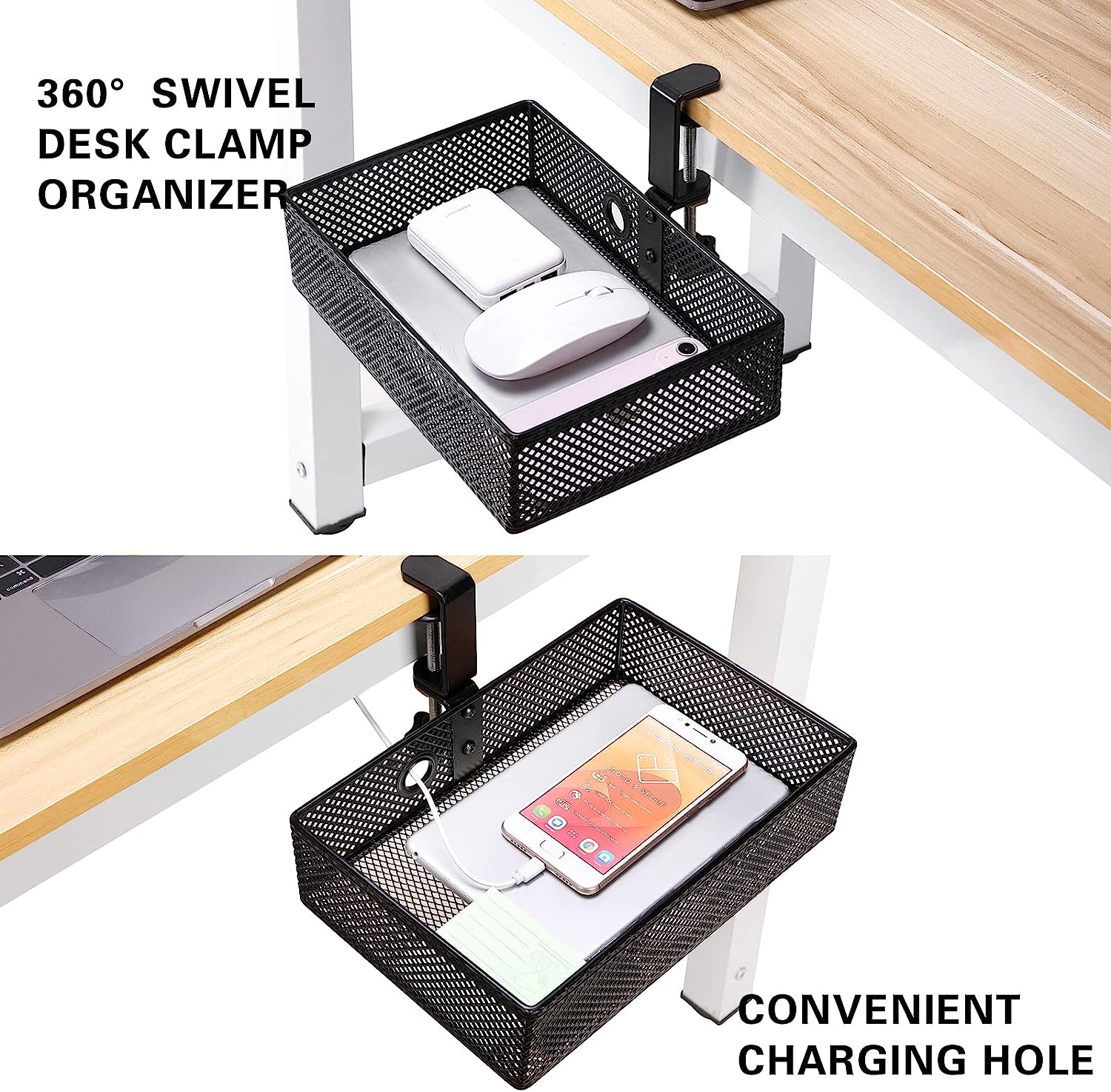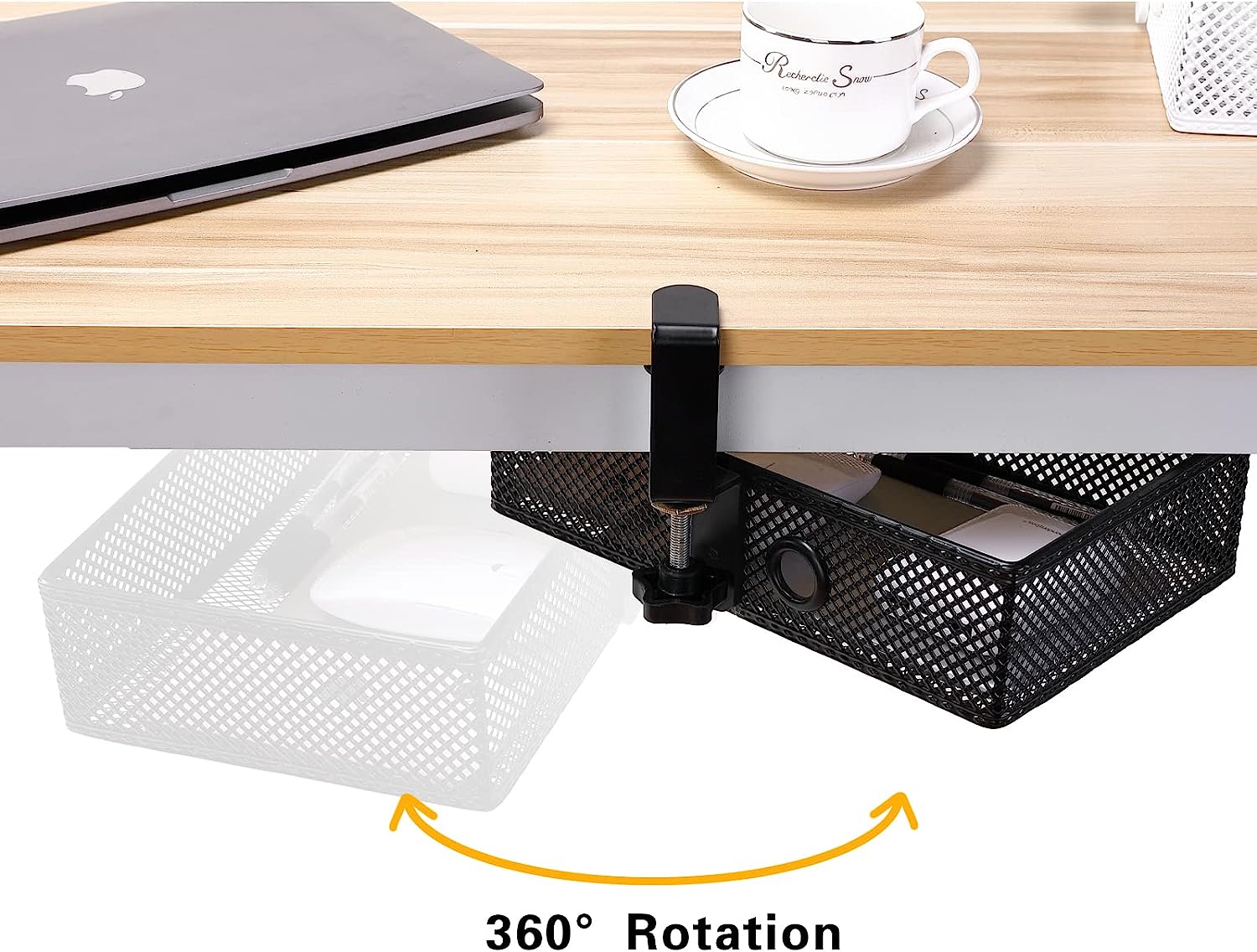Euyona Mesh Desk Organizer and Clamp-on Swivel Pencil Drawer, Desk Hidden Desk Organizer Extra Sturdy C-Clamp Mount System and Easy to Instal, Home Office Art Supply Storage Box (Black)