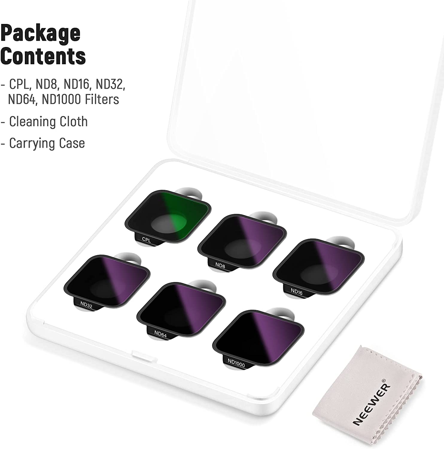 - 【What You Get】Package includes CPL, ND8, ND16, ND32, ND64, ND1000 filters in a small protective hard plastic case. Note: Only the glass surface is water resistant; The filter cannot be used in water