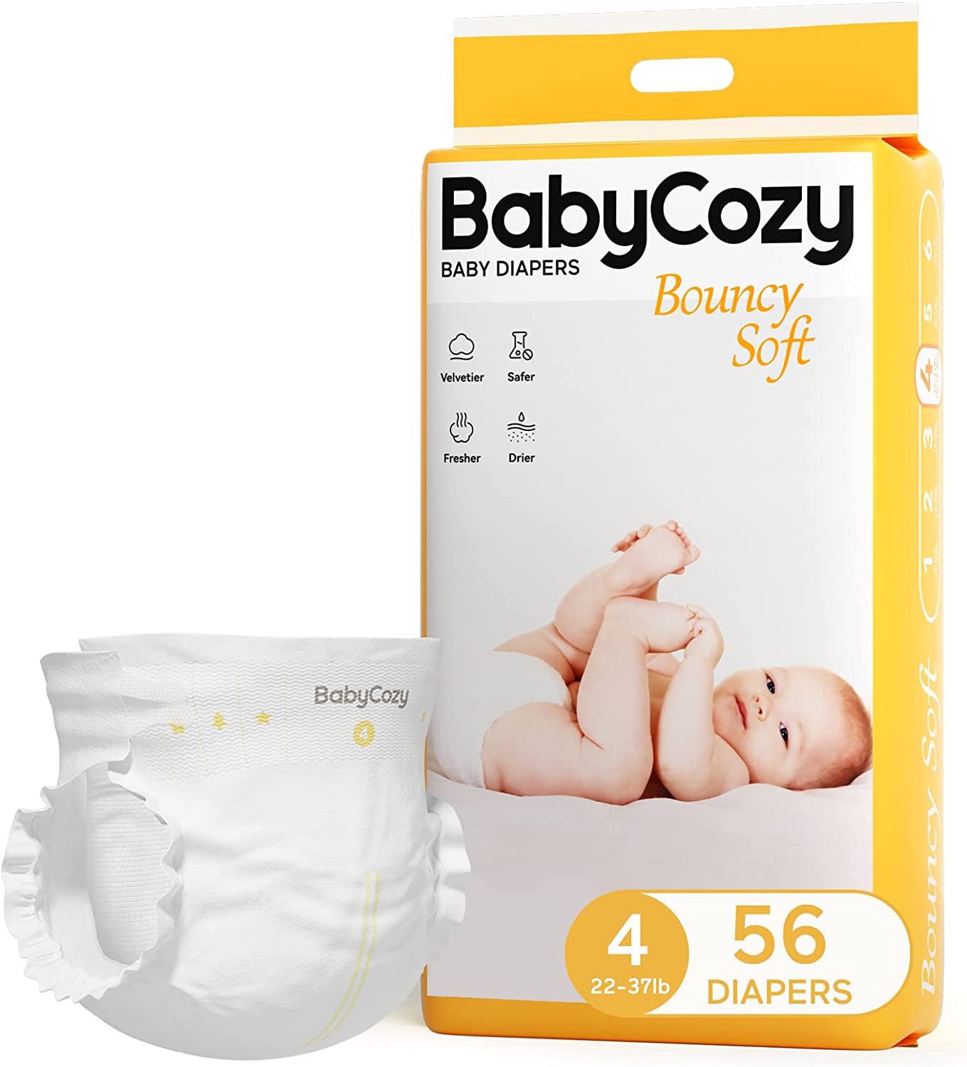 Baby Diapers Size 4(22~37lb),56 Count Babycozy Bouncy Soft Diapers Dry Disposable, 10s Strong Absorption Diapers with Leak Proof System, Hypoallergenic Diapers to Protect Sensitive Baby Skin