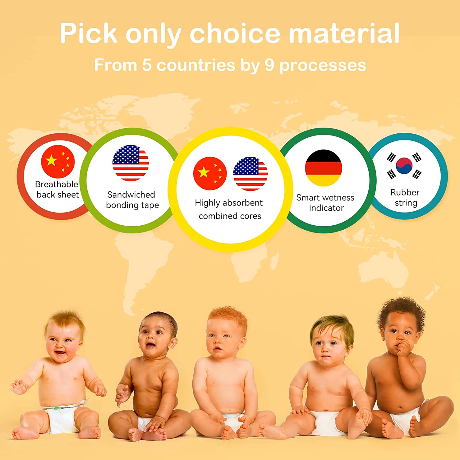• ?【All-round Protection】Leak proof diapers for baby stuff newborn gets a 5X leakage proof upgrade with an overall wider and longer size, along with wider waistband and 3D side liner. It is perfectly secured by a 3X gripping sandwiched magic tape. So wiggle up how you wish, buddy!