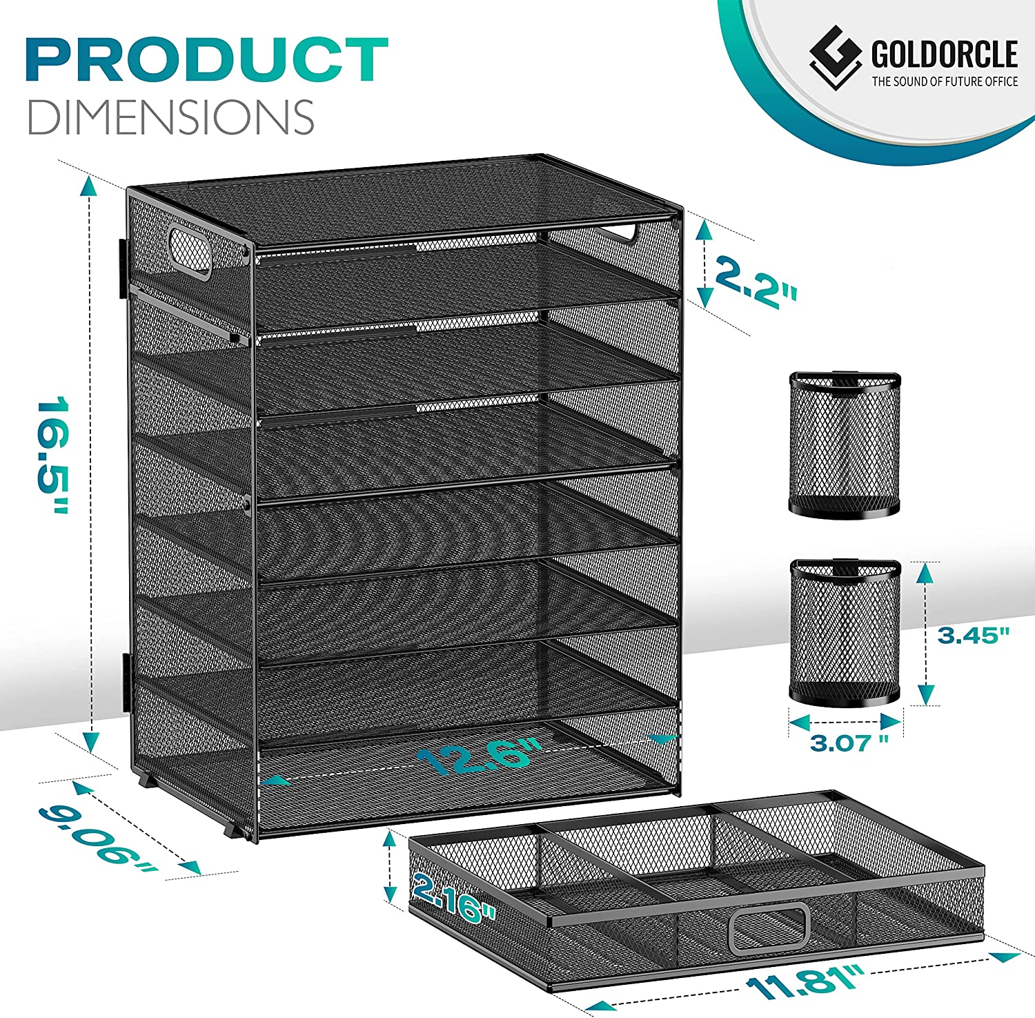 【8-Tier Large Capicity】Measures 12.6 L x 9.06 W x 16.5 H in total, 2.2 inches for each tray. The desktop paper tray organizer is big enough to hold more files and classify your paper more detailed