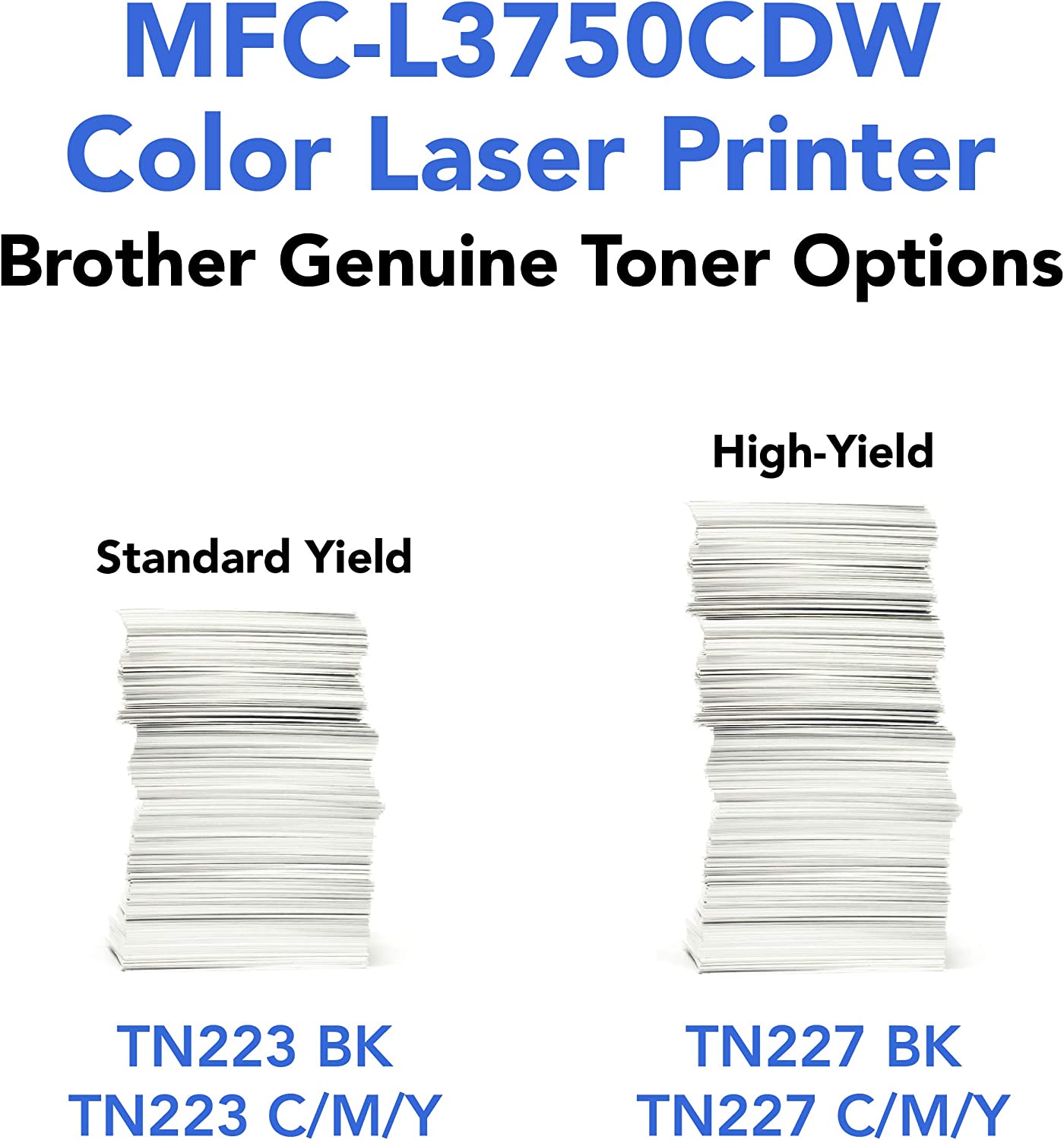 The MFC L3750CDW helps make color printing affordable. Toner Save Mode helps you save on toner costs. Automatic duplex printing helps save time and paper. With Brother affordable increased yield toner options, there’s never been a better time to add a Brother digital color printer to your home or small office looking for laser printer quality. Choose from Standard or High Yield toner to help make color printing even more economical.