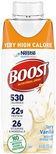 Very High Calorie: BOOST Very High Calorie is a calorically-dense and nutrient packed nutritional drink and can be used as a snack or mini meal for those with low appetites; Available in Vanilla, Strawberry, & Chocolate flavors.