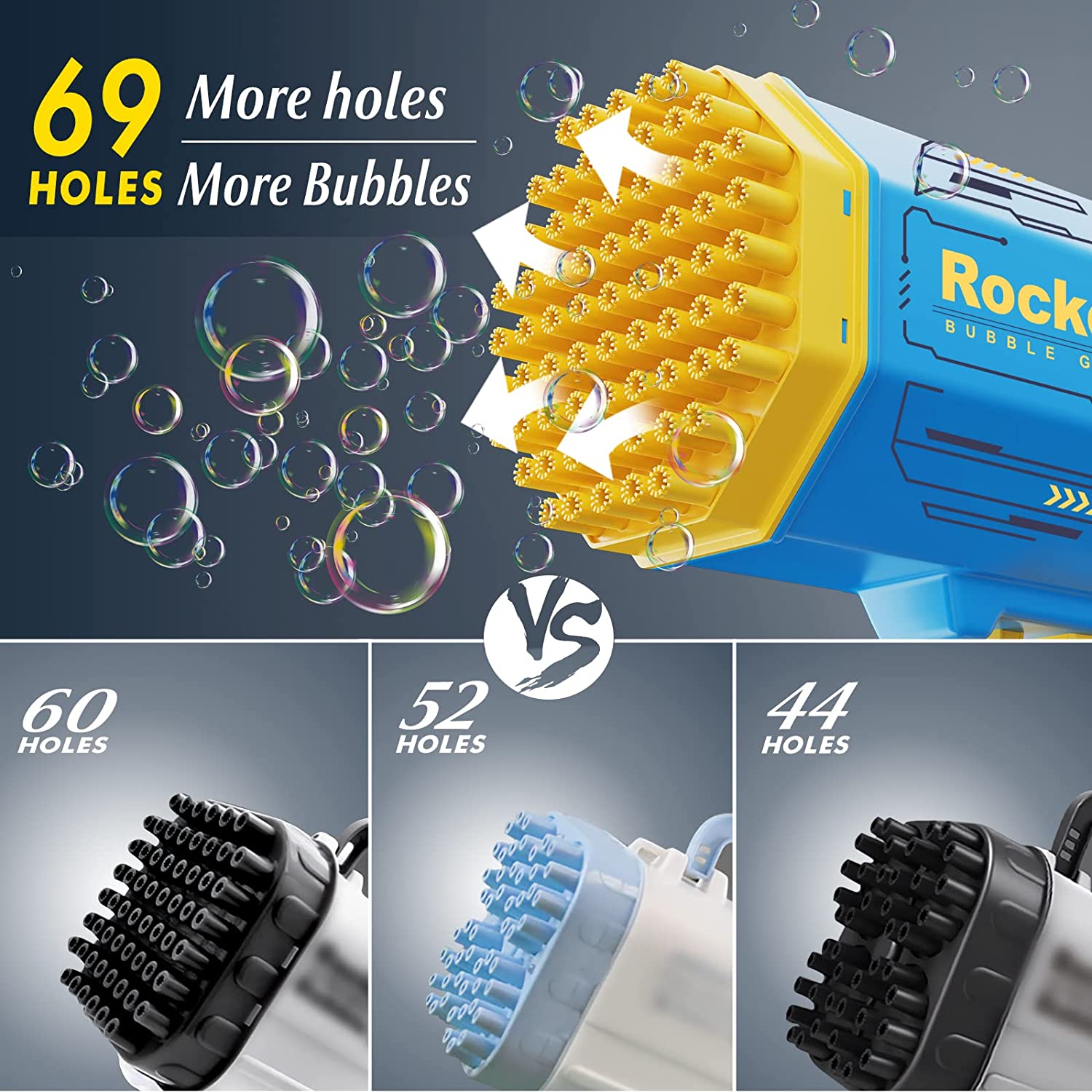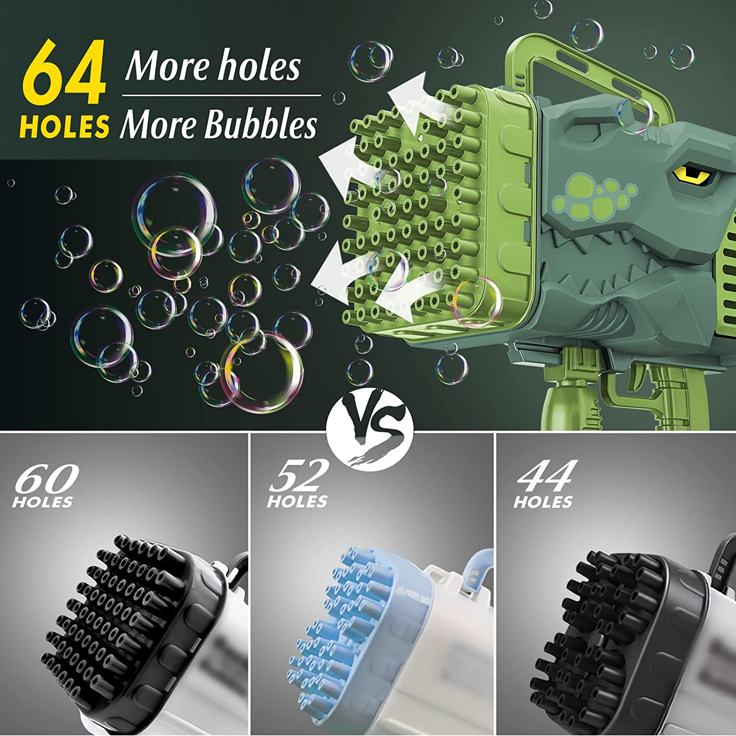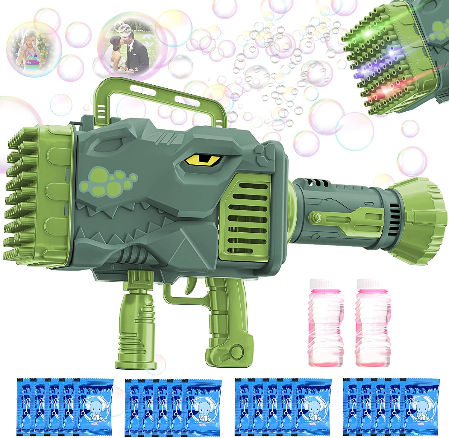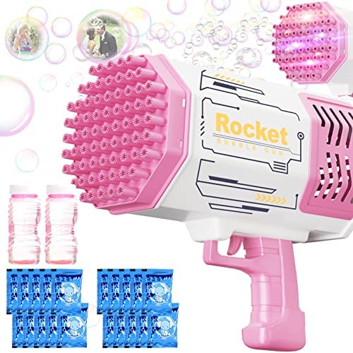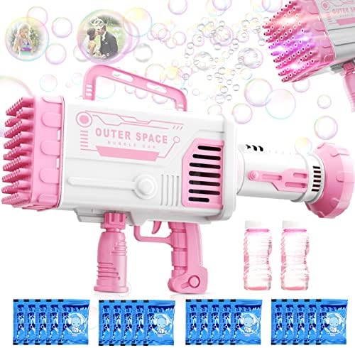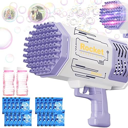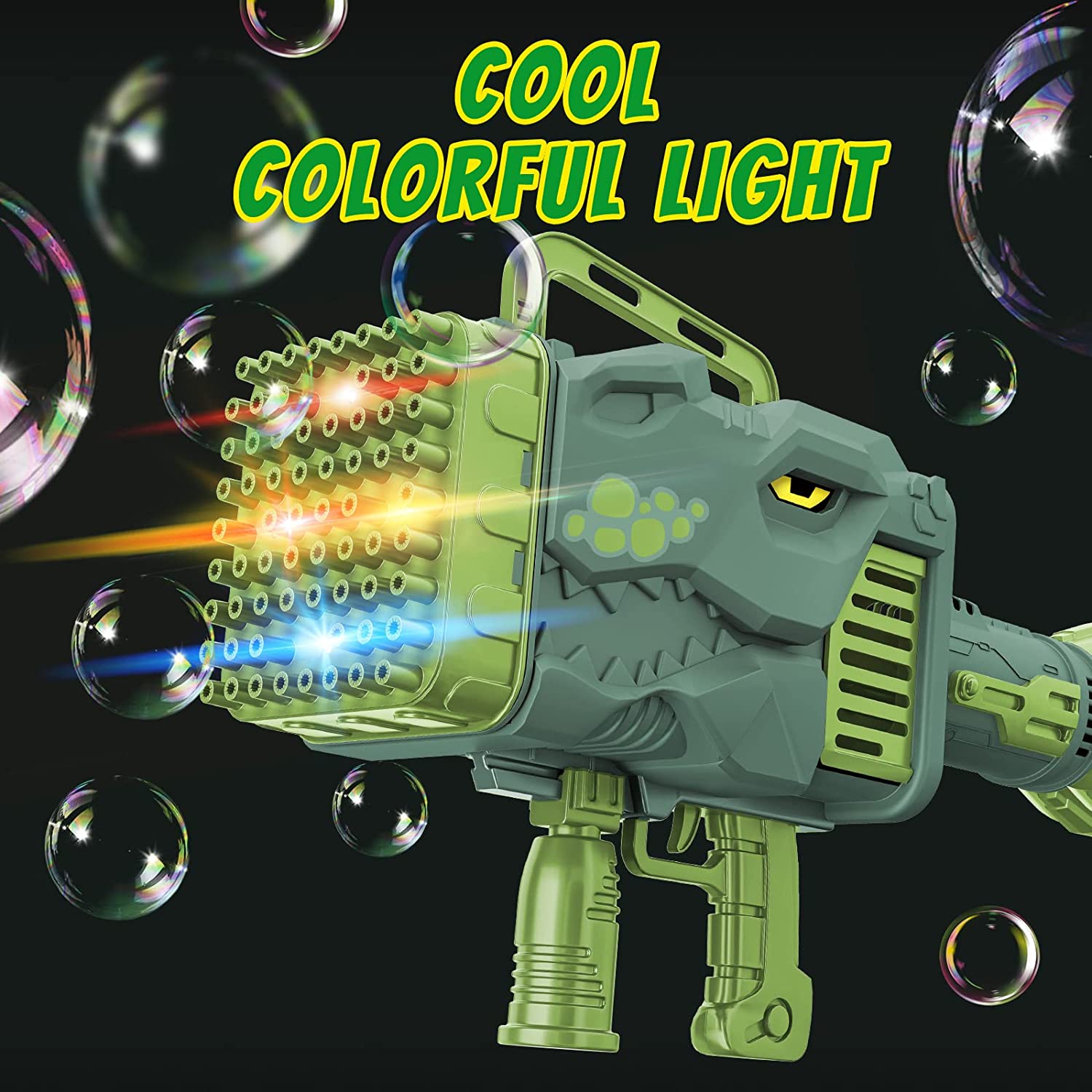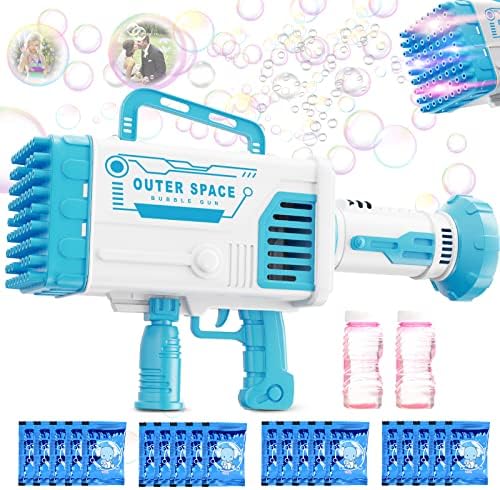 • 69 HOLES - Our bubble gun has 64 bubble holes and can blow thousands of bubbles at a time. It also comes with colored lights for surprising effects when playing at night!