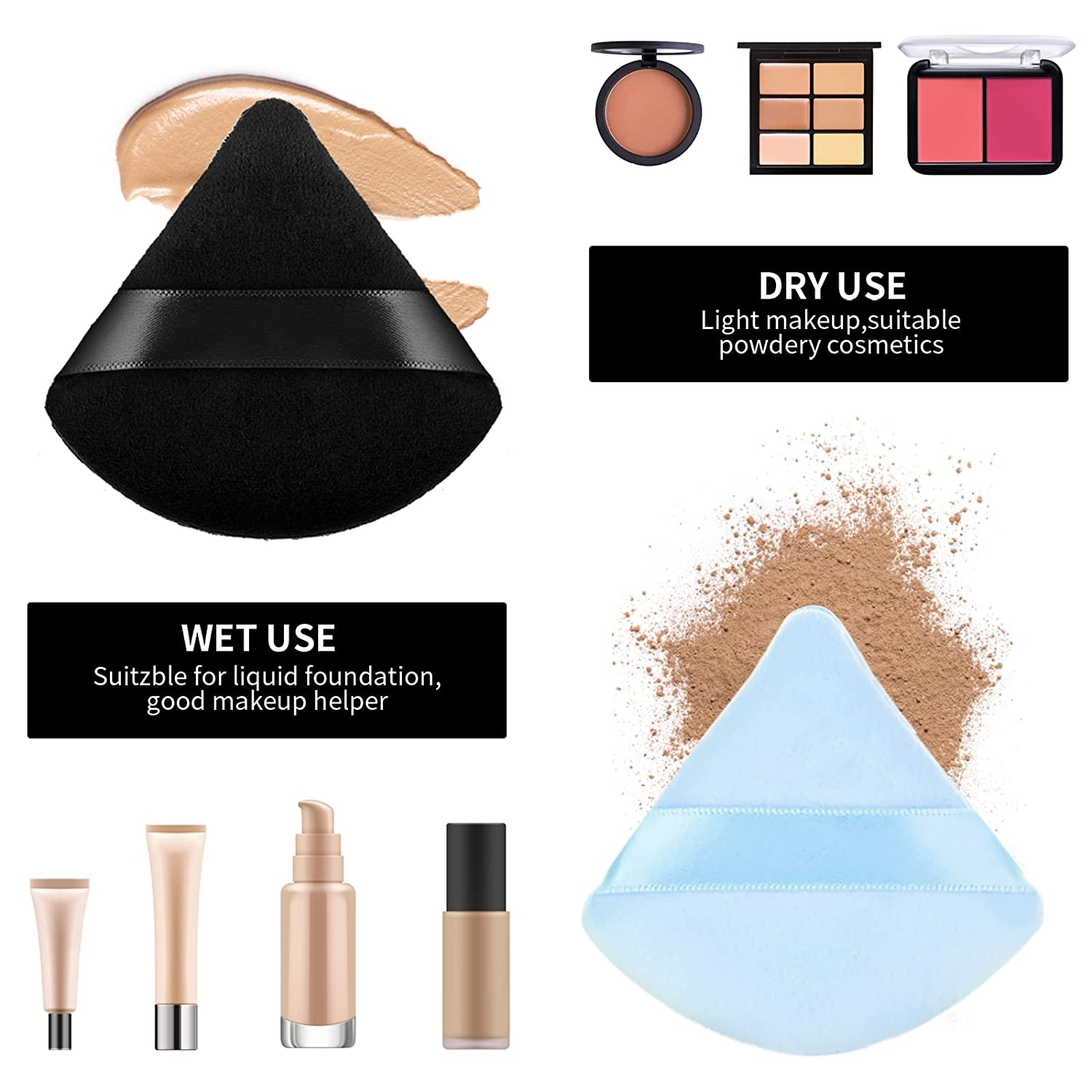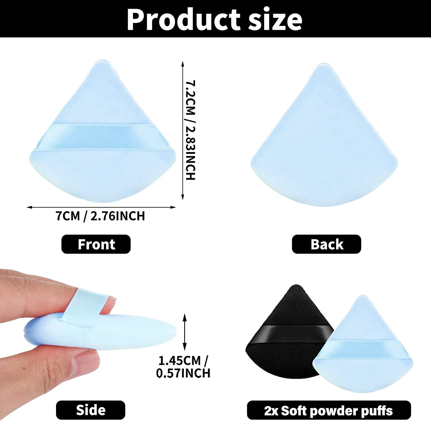 【Suitble Size】Our triangle body powder puff, each pure powder puff measures about 7cm, the normal size can fit your hand well, each makeup puff comes with 1 strap for you to hold well and easier to use the powder applicator, the triangle shape makes the makeup on T-zone easier.