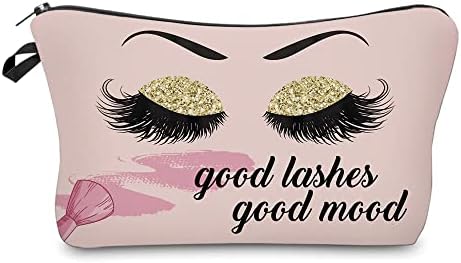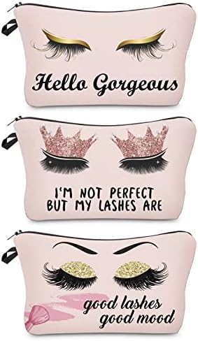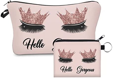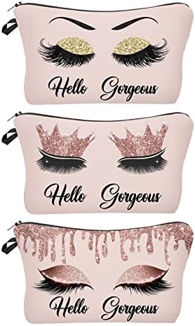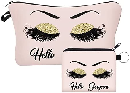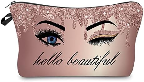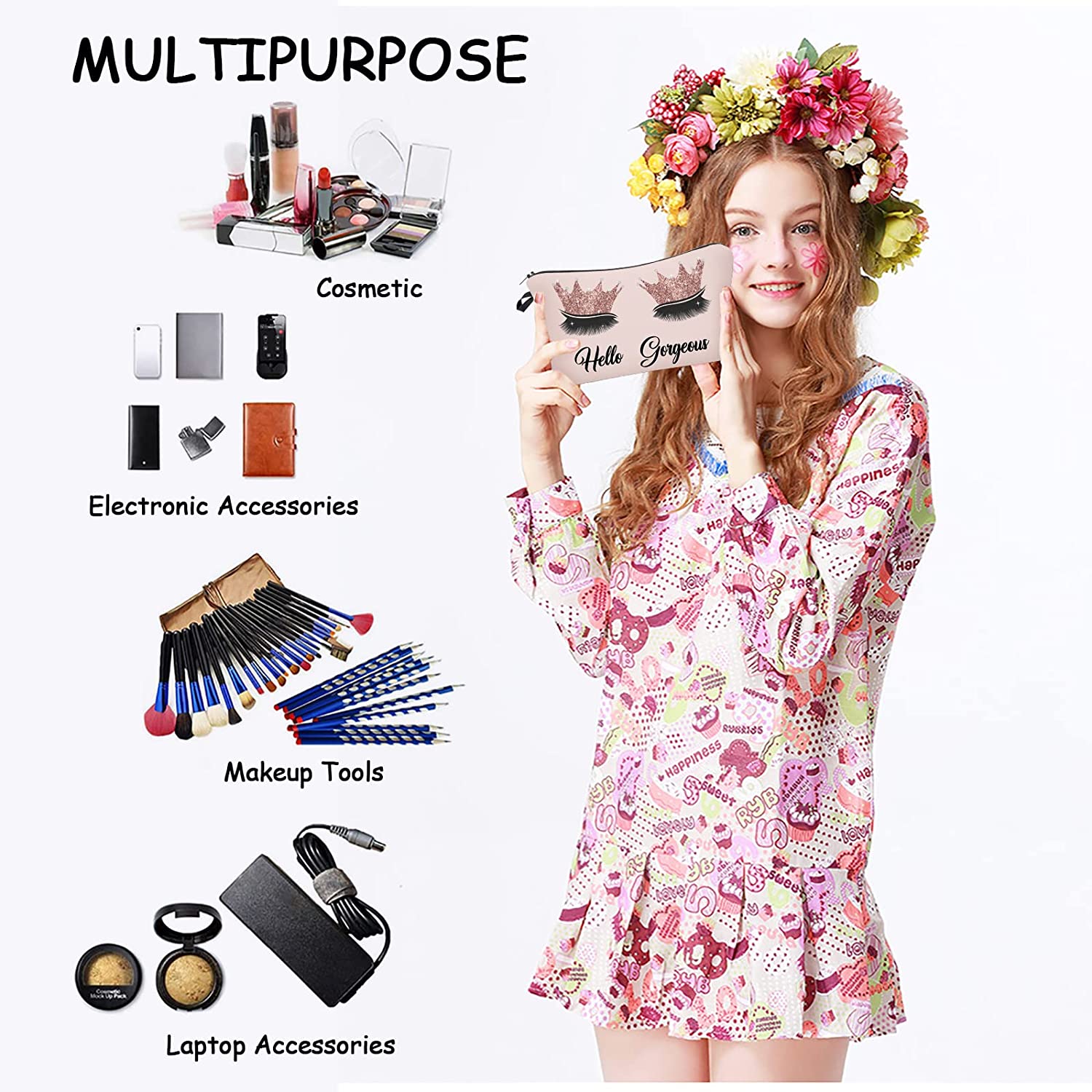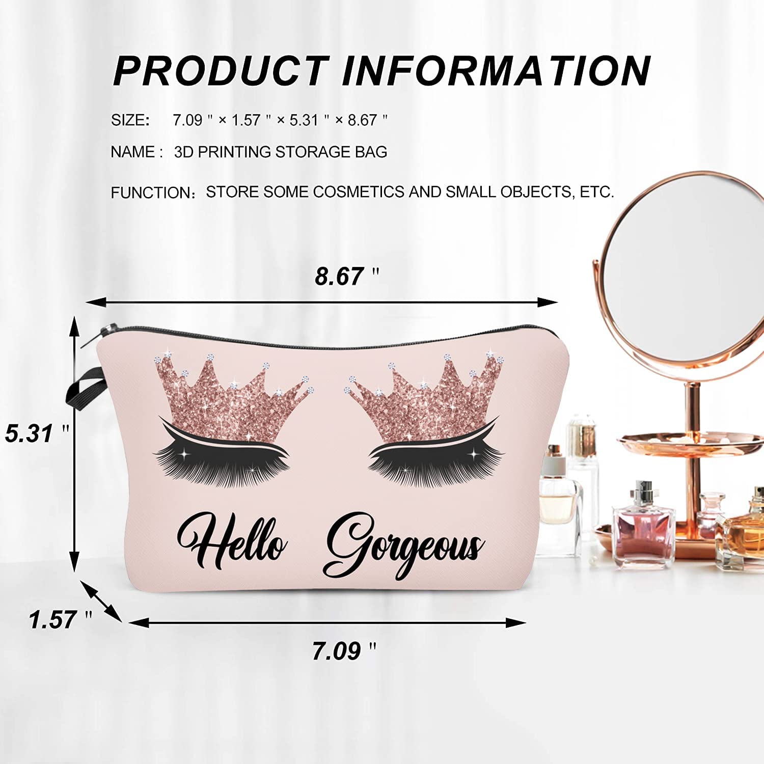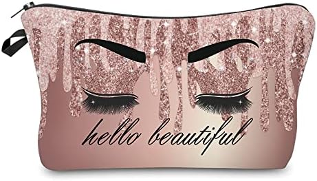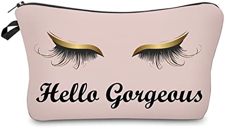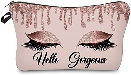 Hello Gorgeous Makeup Bag for Purse Eyelash Pink Cosmetic Bags for Women Inspirational Gift for Girls Small Funny Cosmetics Glitters Eyeshadows Travel Bag Cases for Toiletries Accessories Organizer