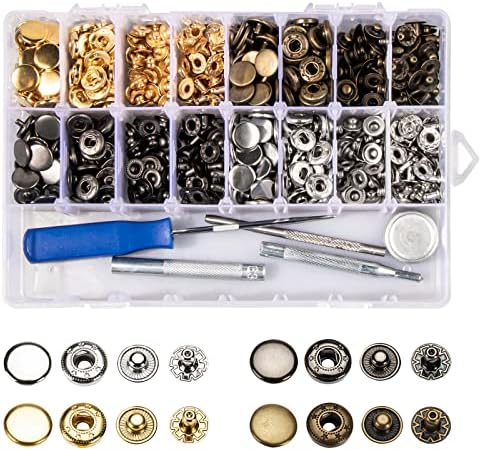 164sets Leather Snaps and Fasteners Kit, 12.5mm Snap Fasteners Kit, Leather Snaps, Metal Heavy Duty Snaps with Install Tool for Leather, Clothes (Black, Gold,Silver,Bronze)